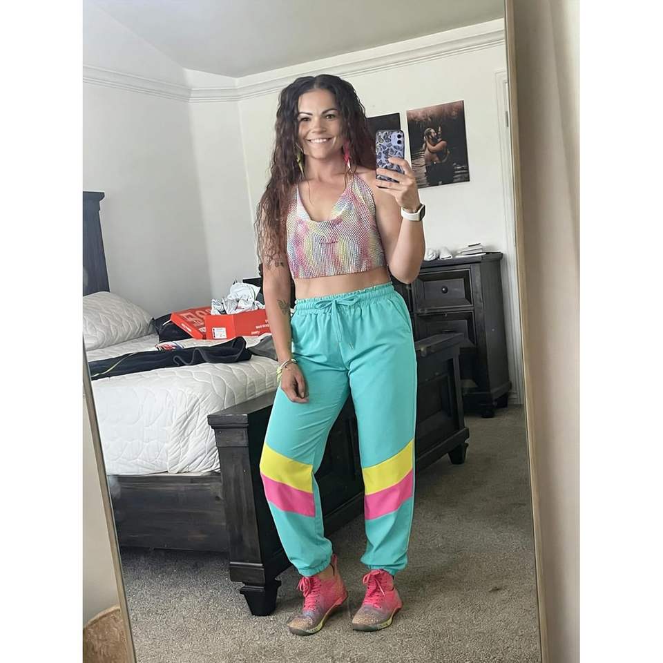 กางเกงจ็อกเกอร์คาร์โก้สไตล์ยุค 80 สีนีออนสำหรับผู้หญิง เอวกลาง ผ้าเทอร์รี่ระบายอากาศได้ดี มีกระเป๋า ใส่ได้สองด้าน สไตล์ลำลอง
