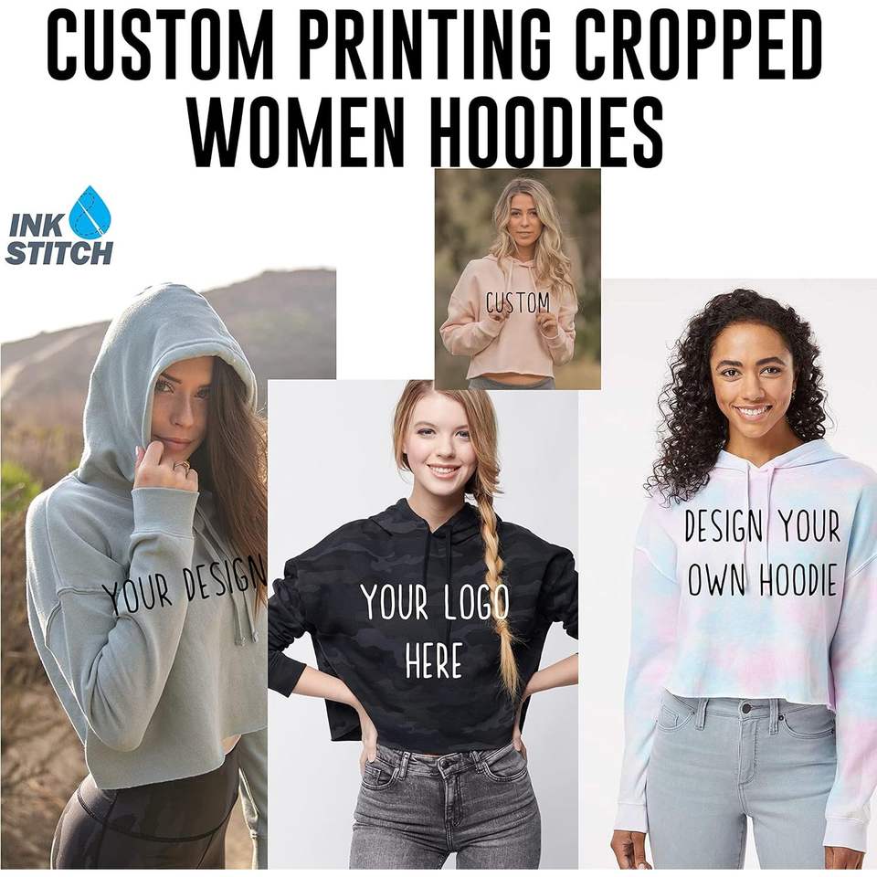 เสื้อสเวตเตอร์มีฮู้ดสำหรับผู้หญิงเสื้อครอปพิมพ์ลายหลากสีน้ำหนักเบา Afx64crp ออกแบบได้ตามต้องการ
