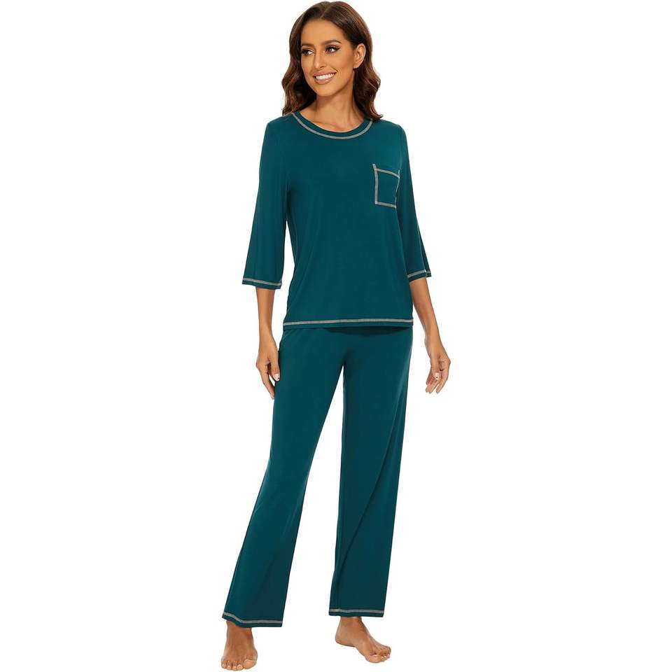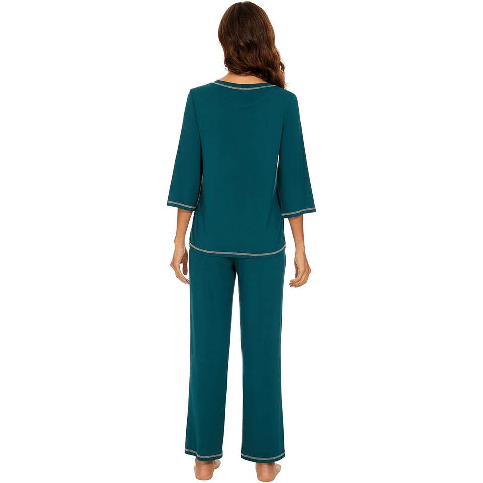 ชุดนอนผ้าไผ่วิสโคสสำหรับผู้หญิง แขนสามส่วน กางเกงขายาว ชุดนอนเย็นสบาย เนื้อผ้านุ่มพิเศษ ไซส์ S-XXL