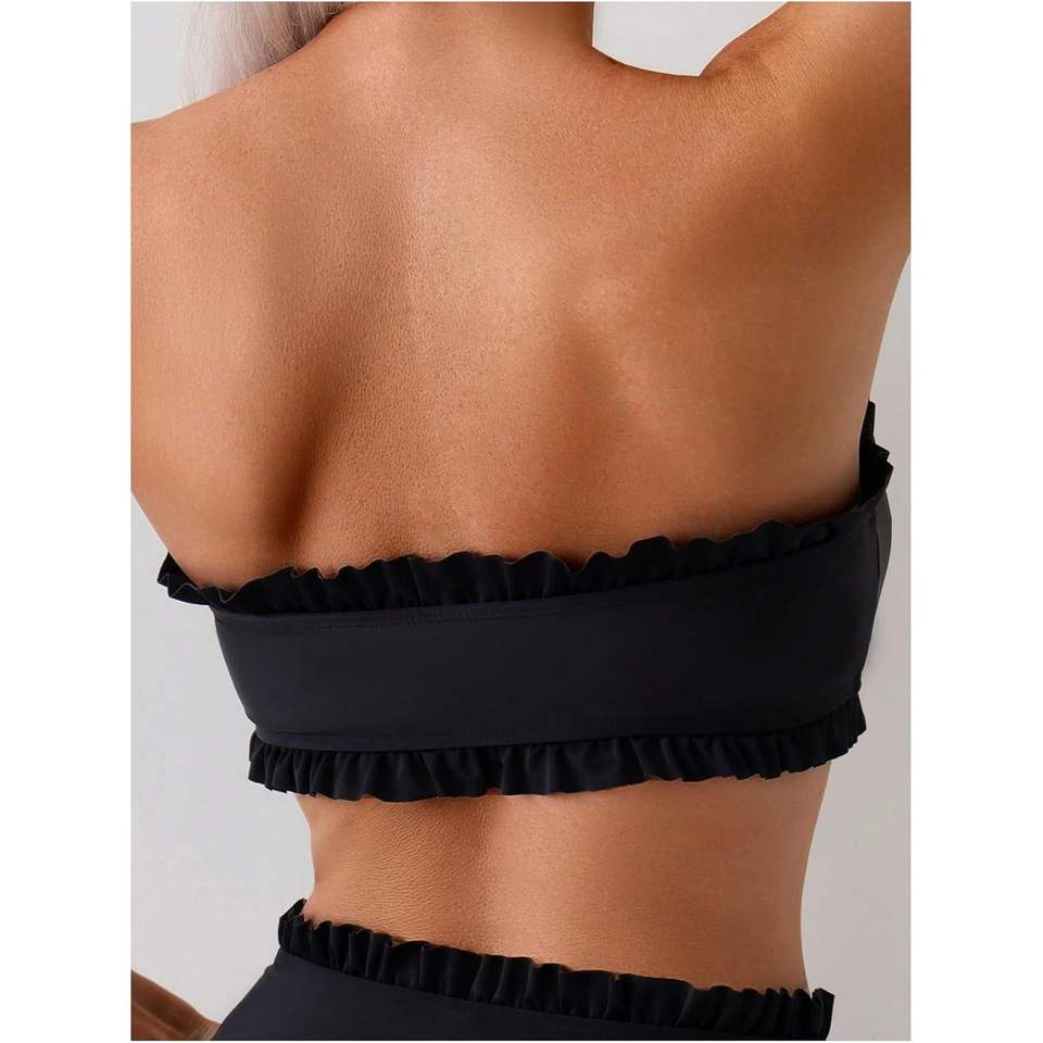 ชุดบิกินี่แบบผูกหน้าสำหรับผู้หญิง ดีไซน์ระบาย สายรัดไหล่แบบไม่มีสาย ชุดว่ายน้ำสองชิ้นเอวสูง ผ้าซาติน แห้งเร็ว สำหรับฤดูใบไม้ผลิและฤดูร้อน