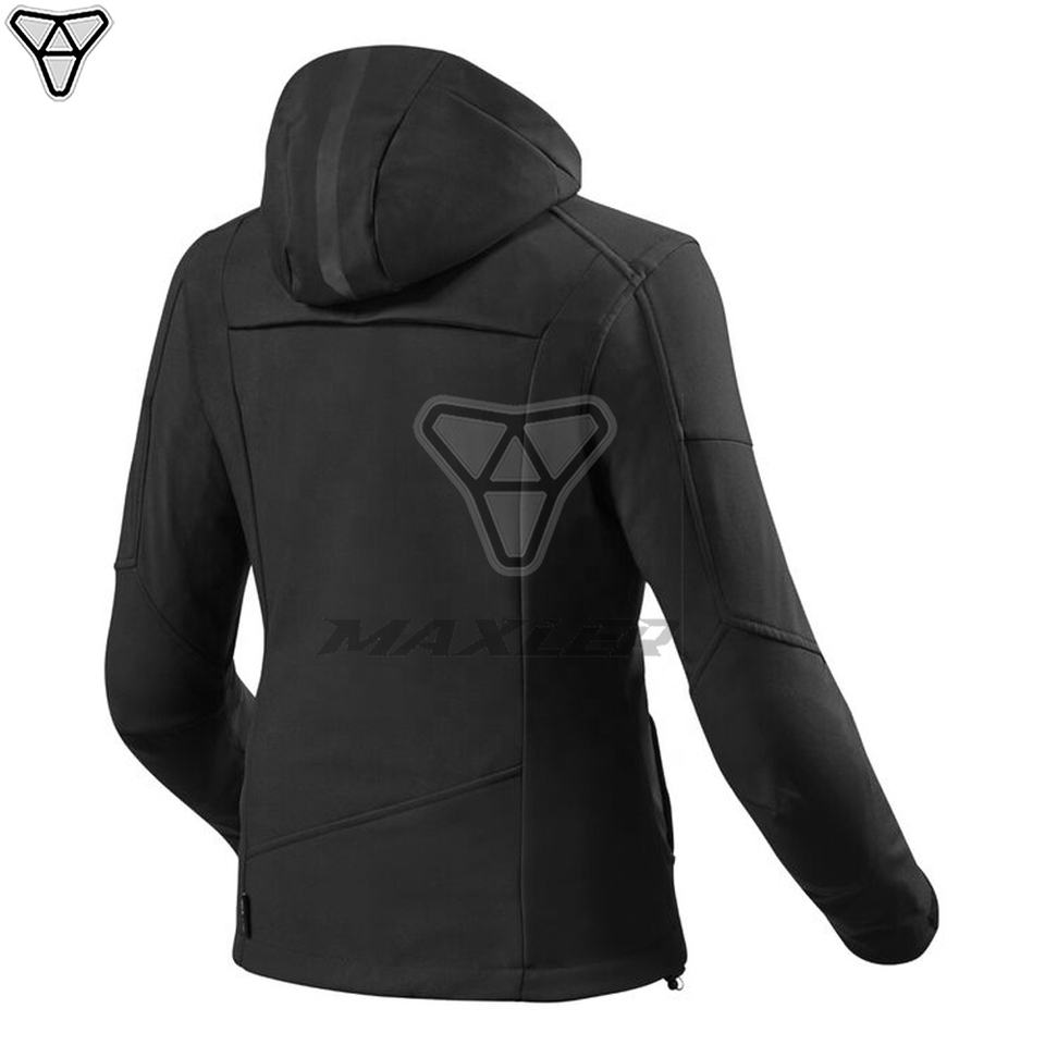 เสื้อแจ็คเก็ตหนังนิ่มสีดำสำหรับผู้หญิงแบบมีฮู้ด สไตล์นักแข่งมอเตอร์ไซค์