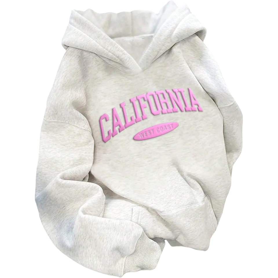 Custom Women's California West Coast Hooded Sweatshirt Knitted Long Sleeve Preppy Style Breathable Loose Fit Fall Hoodie
