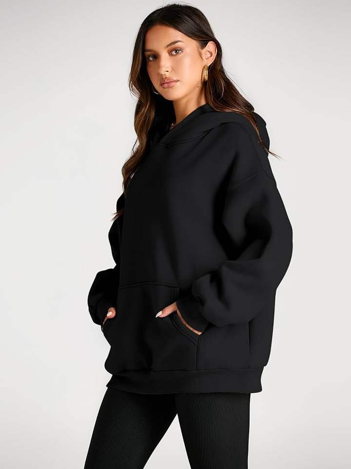 เสื้อมีฮู้ดสวมหัวแขนยาวน้ำหนักเบาแบบลำลองสำหรับผู้หญิงเสื้อสเวตเชิ้ตแบบหลวมมีฮู้ดกระเป๋าไม่มีเชือก
