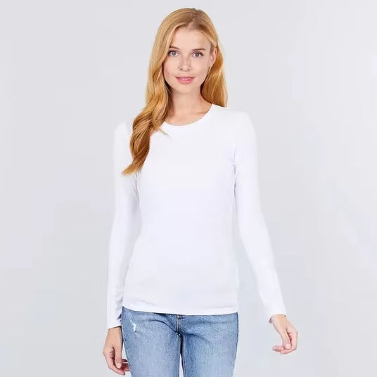 เสื้อยืดแขนยาวลำลองผู้หญิง ผ้าฝ้ายยืด ระบายอากาศ แห้งเร็ว เป็นมิตรกับสิ่งแวดล้อม ผ้าฟลีซเนื้อนุ่ม ทรงเข้ารูป รับผลิตแบบ OEM