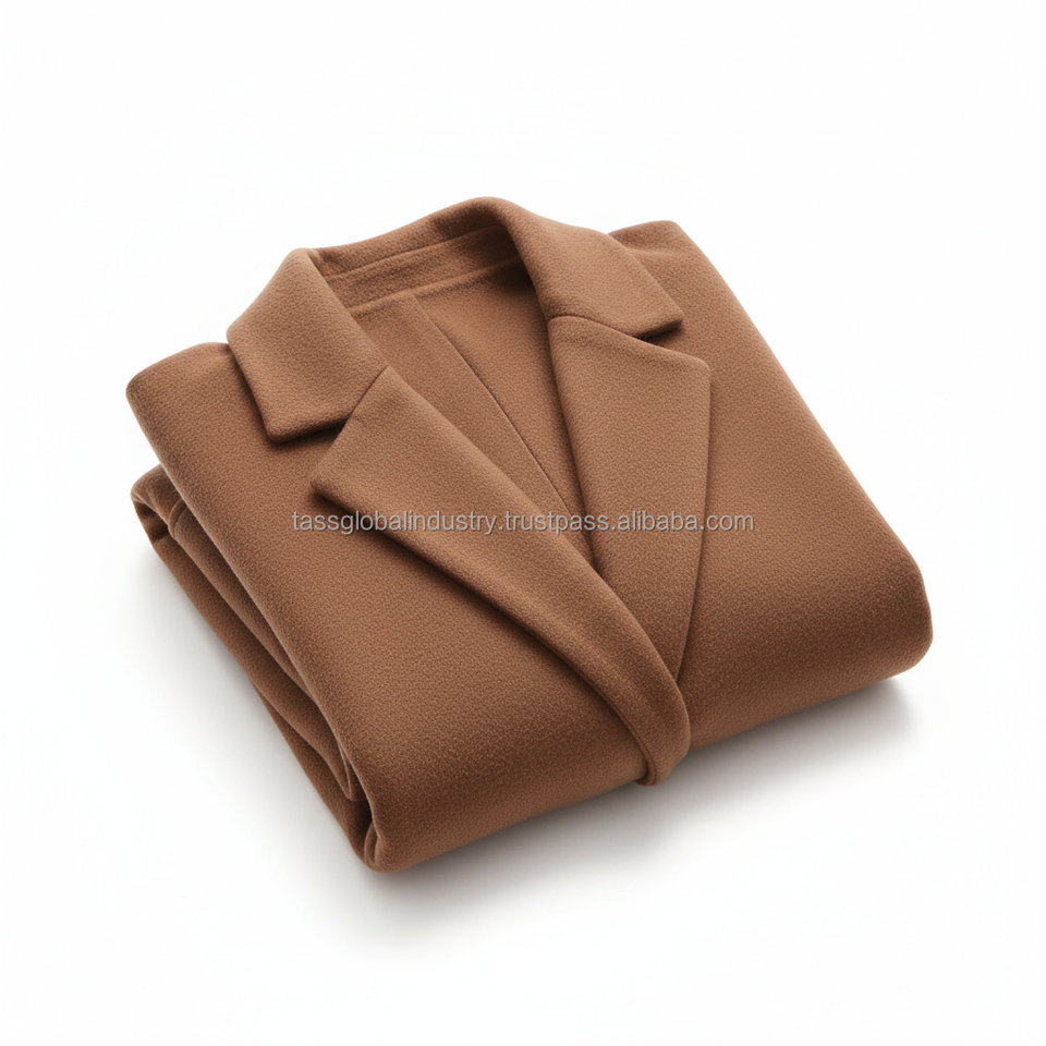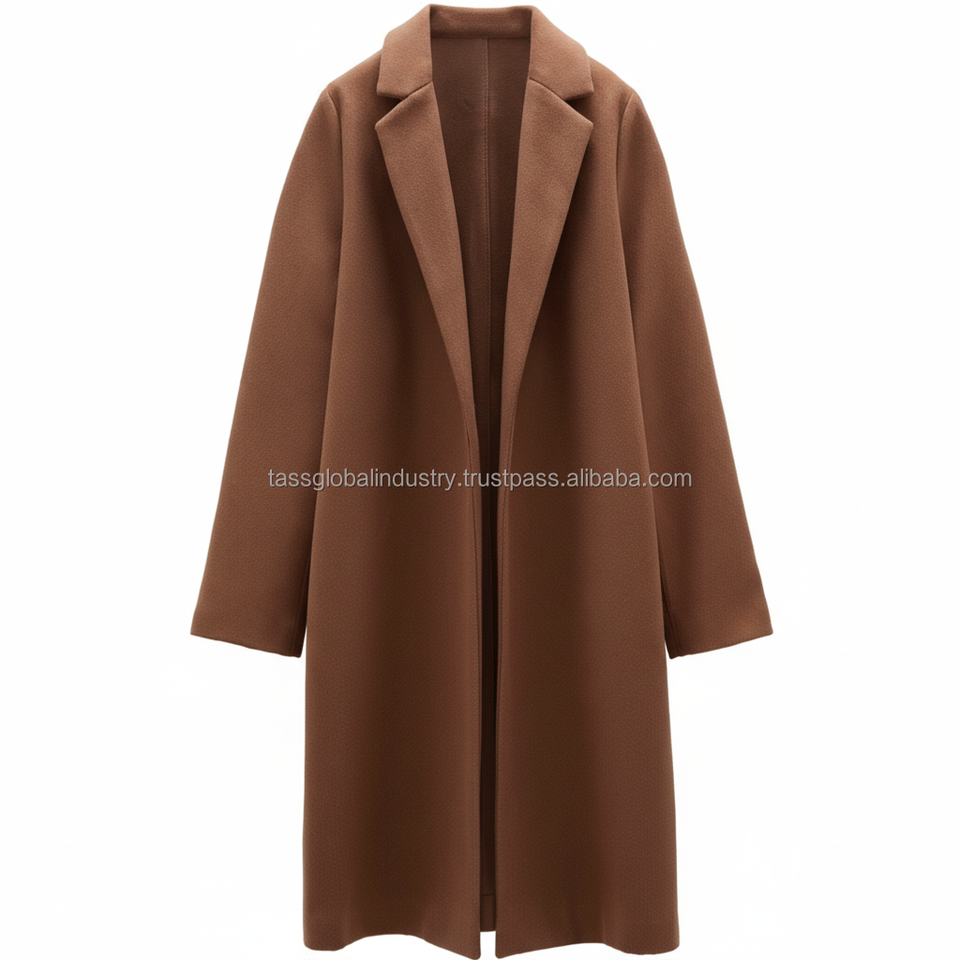 เสื้อโค้ทขนสัตว์สีน้ำตาลชาร์โคลแบบกระดุมสองแถวสำหรับผู้หญิง ผลิตตามสั่งและรับผลิตภายใต้แบรนด์ของลูกค้า