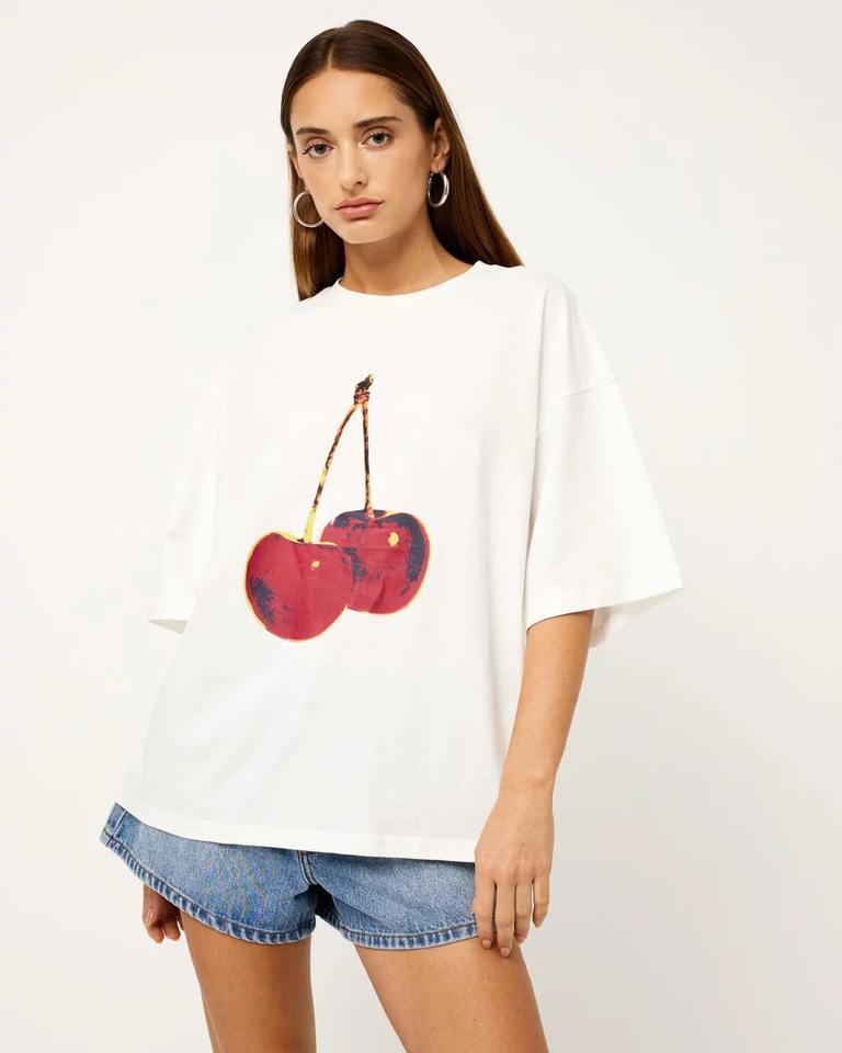 เสื้อยืดกราฟิกขนาดใหญ่ลายสาวเชอร์รี่ออกแบบได้ตามต้องการสำหรับผู้หญิงผ้าถักทรงหลวมคุณภาพระดับพรีเมียมสำหรับฤดูหนาว