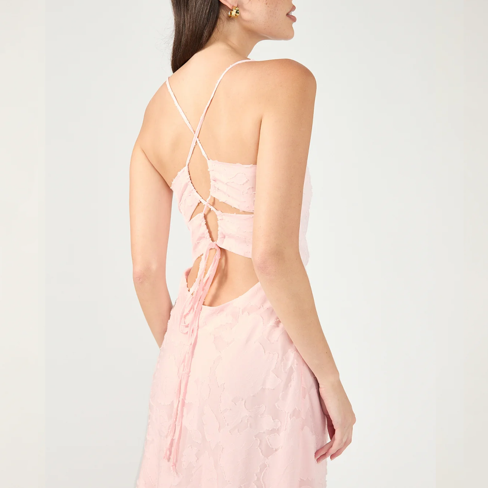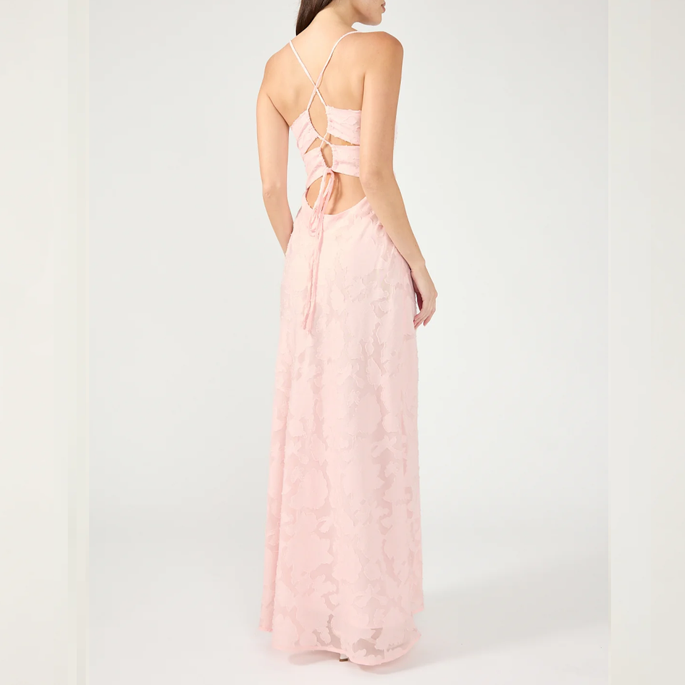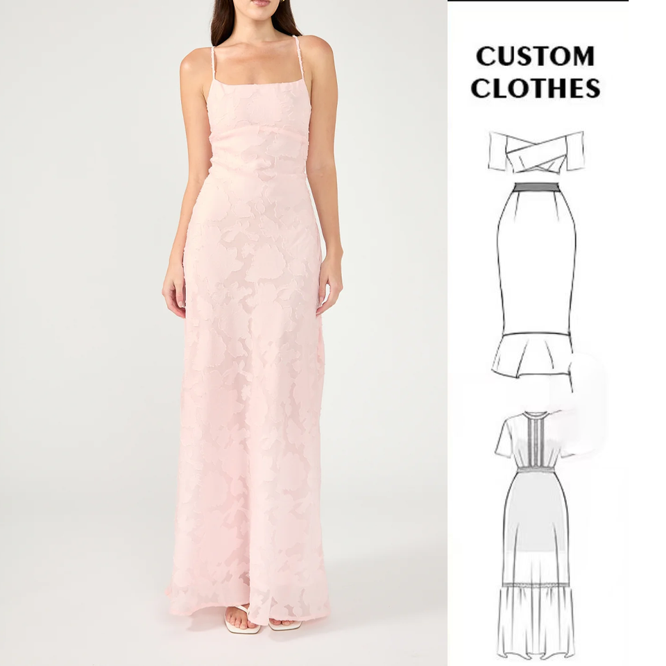 เดรสแม็กซี่แบบผูกเชือกสำหรับผู้หญิงเดรสลำลองไซส์ใหญ่พิเศษสีชมพูอ่อน