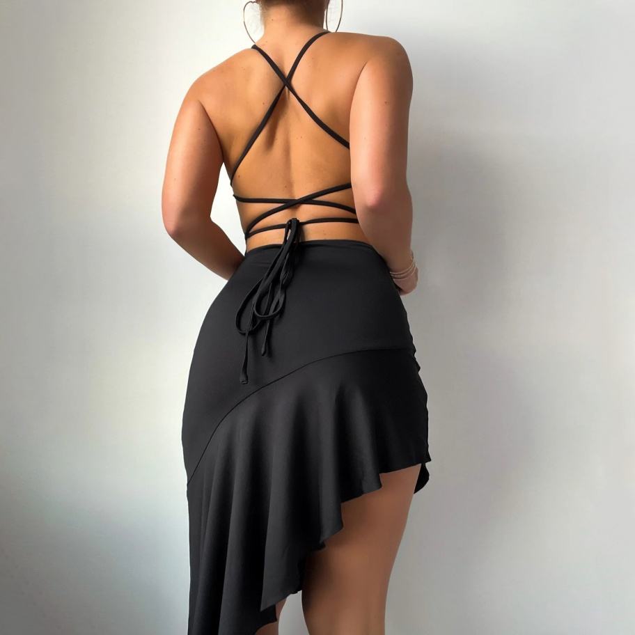 ชุดเดรสสั้นรัดรูปสำหรับผู้หญิง แบบเรียบง่าย เป็นมิตรกับสิ่งแวดล้อม แต่งระบาย ดีไซน์เซ็กซี่ เหมาะสำหรับงานปาร์ตี้ เปิดหลัง