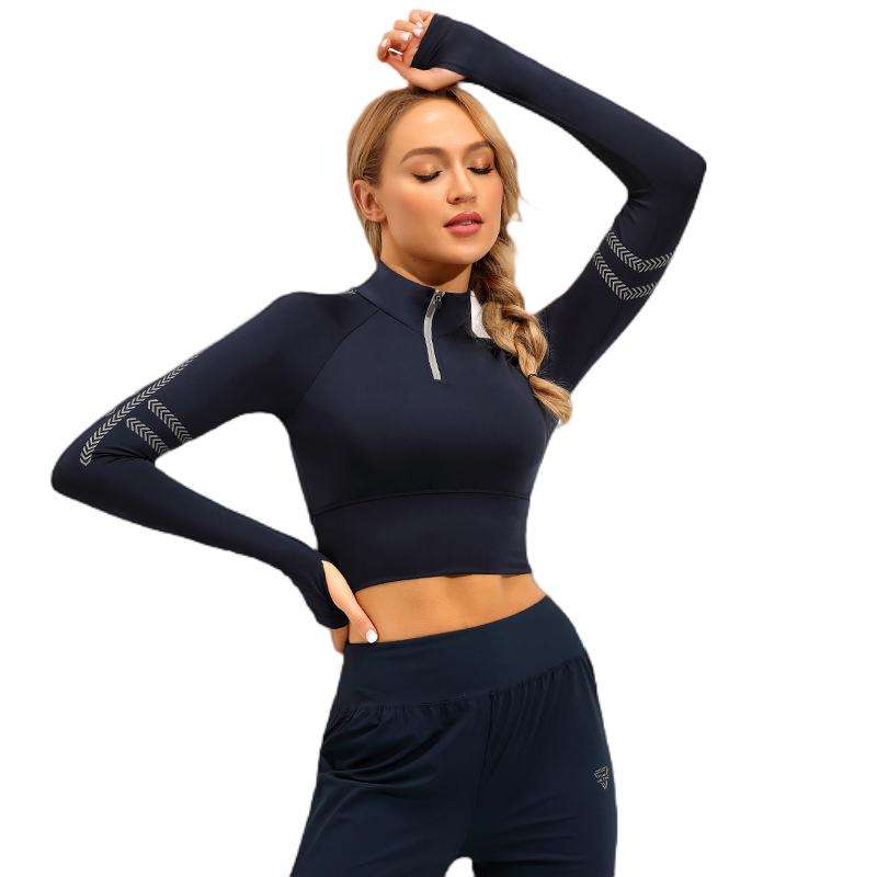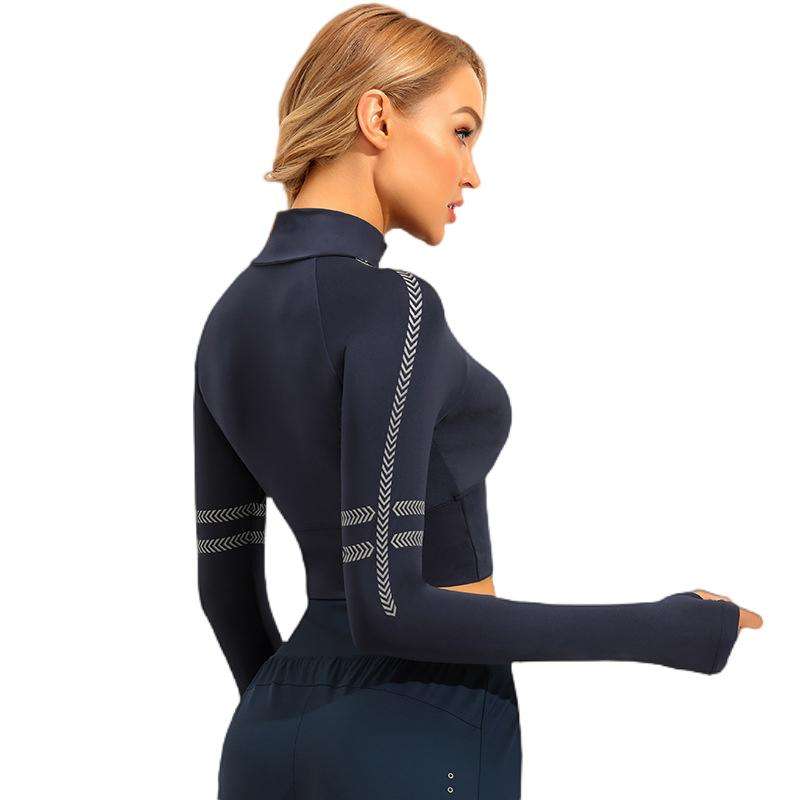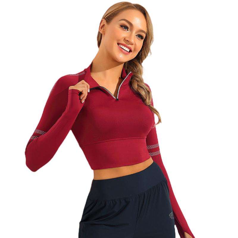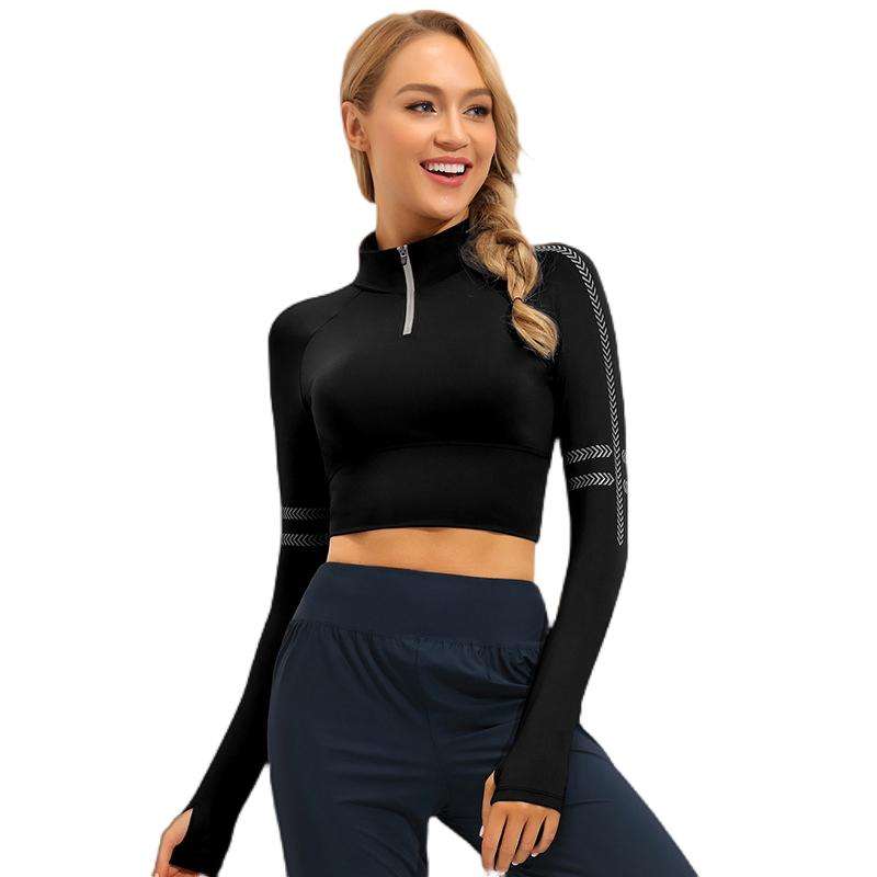เสื้อแจ็กเก็ตออกกำลังกายแบบสวมศีรษะมีซิปของผู้หญิงเสื้อกีฬาวิ่งเสื้อเข้ารูปแขนยาวกำหนดเองได้1/4