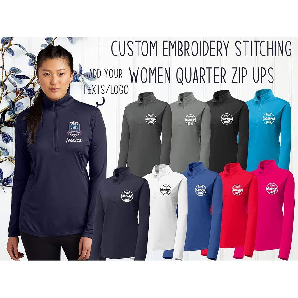 ชุดกีฬาปักลายสตรีแบบกำหนดเอง รุ่น LTS357 ซิปสี่ส่วน พร้อมเพิ่มโลโก้และข้อความของคุณเอง คุณภาพเทียบเท่า PosiCharge