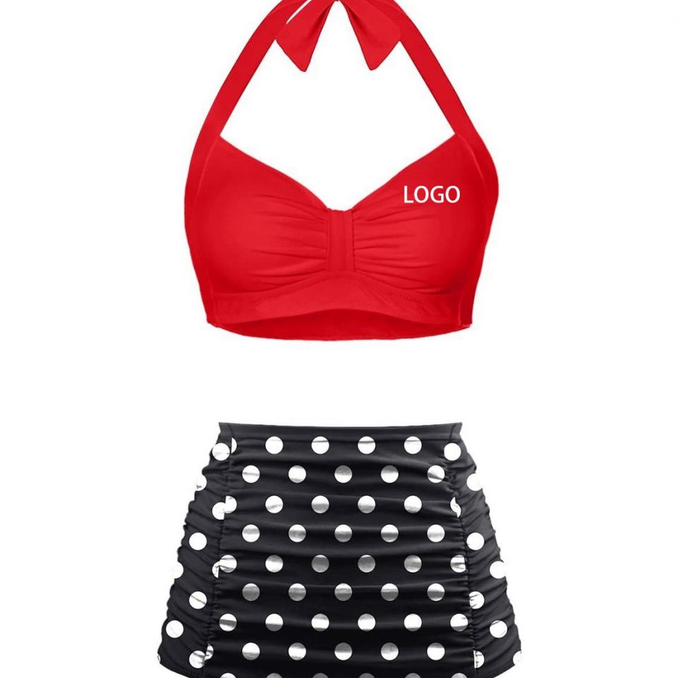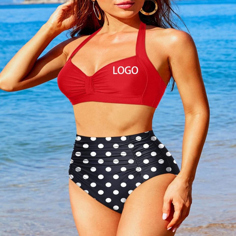 ชุดบิกินี่ผู้หญิงแบบกำหนดเองได้ ลายจุด ชุดว่ายน้ำชายหาดฤดูร้อนสำหรับผู้หญิง ชุดว่ายน้ำไซส์ใหญ่ 2 ชิ้น ชุดว่ายน้ำฤดูร้อนที่ปรับแต่งได้