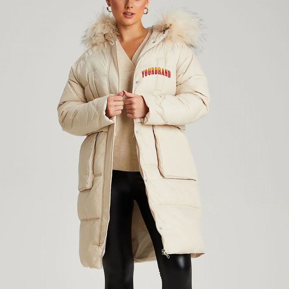แจ็กเก็ตยาวขนเป็ดสำหรับผู้หญิงกันน้ำกันลมเสื้อแจ็กเก็ตขนเป็ดแบบเรียบสำหรับฤดูหนาวออกแบบได้ตามต้องการ