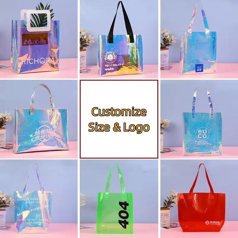 กระเป๋าโท้ทชายหาดกันน้ำพีวีซีใสสำหรับผู้หญิงเป็นมิตรต่อสิ่งแวดล้อมออกแบบได้นำกลับมาใช้ใหม่ได้สำหรับสินค้าโปรโมชั่น