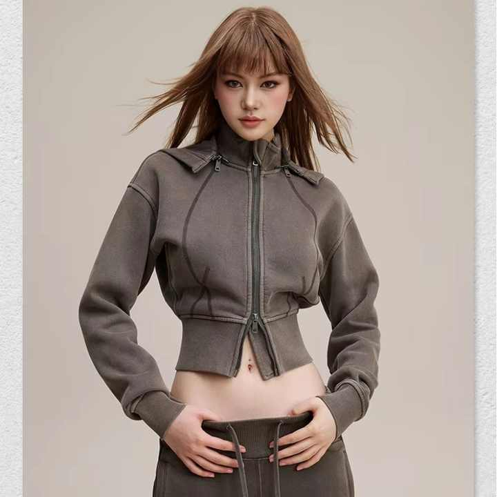 เสื้อฮู้ดซิปสำหรับผู้หญิงแบบมีฮู้ดถอดได้ ผ้าฟลีซหนานุ่ม ปักลายตามสั่ง ดีไซน์ล่าสุดสำหรับฤดูหนาว