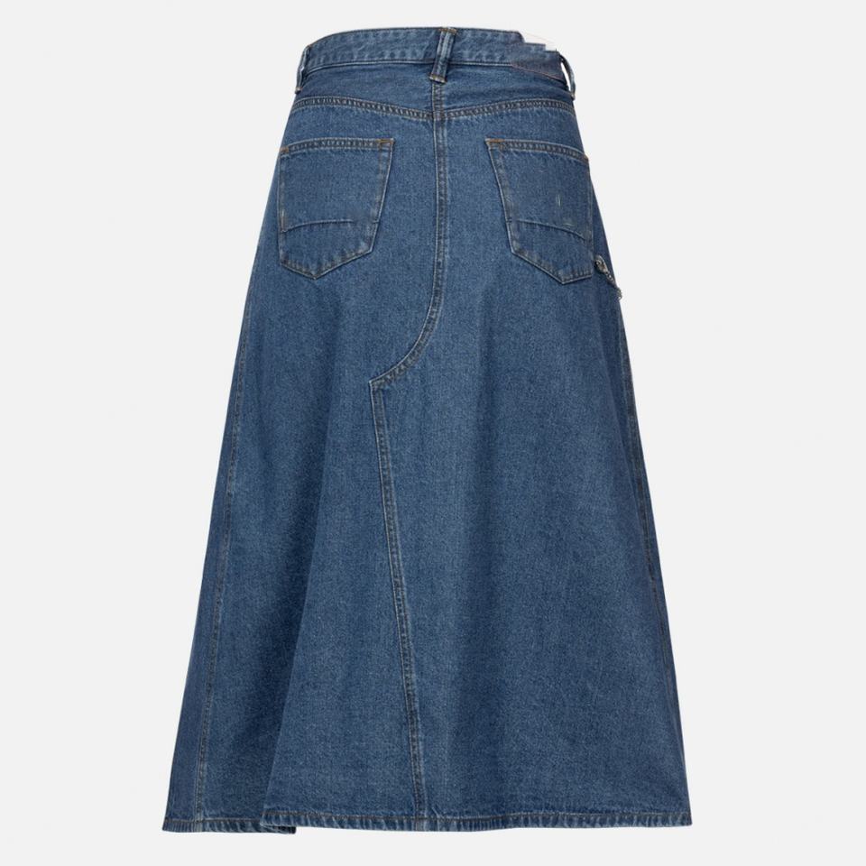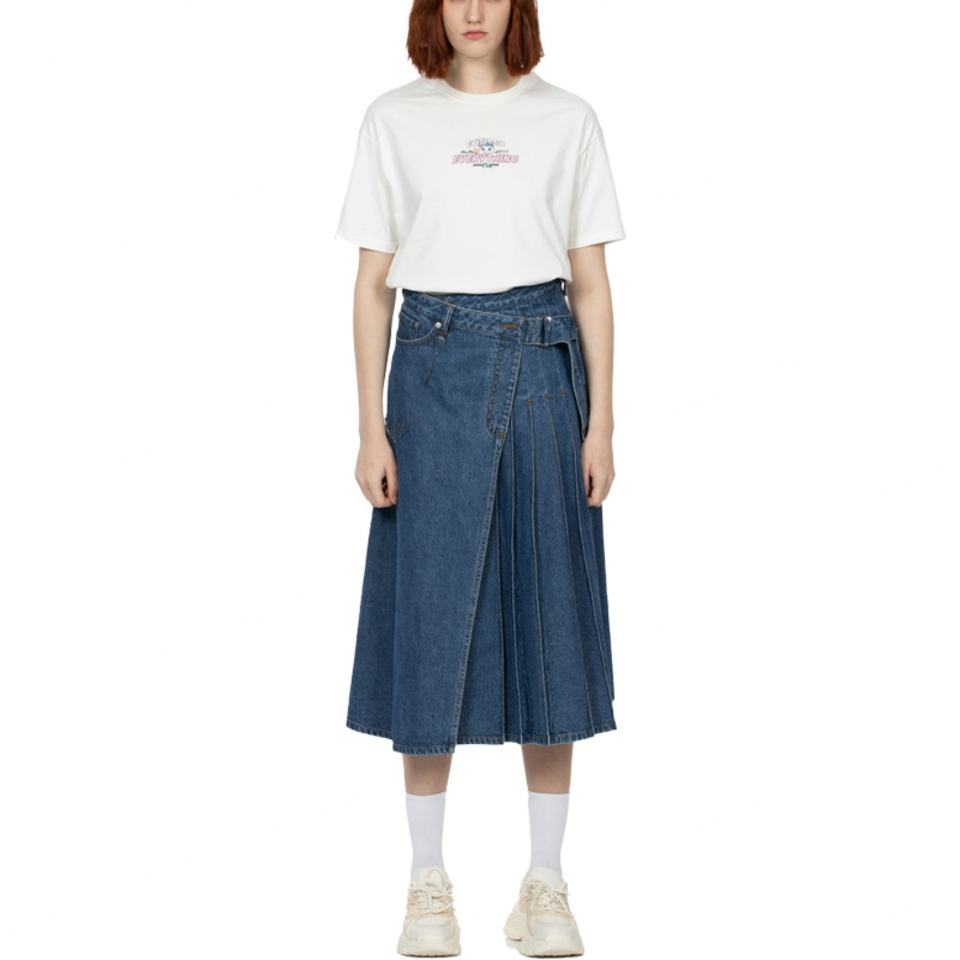 Custom Women's Fashion Denim Pleated Skirts 2024 Ladies Printed Jeans Skirt Adjustable Waist Dress