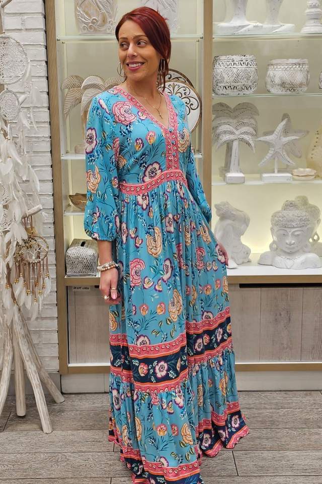 ชุดเดรสลายดอกไม้สำหรับผู้หญิง ชุดเดรสยาวไซส์ใหญ่สำหรับผู้หญิง ชุดเดรสยาวหรูหราสำหรับสุภาพสตรี คอวีทรงใหญ่ คุณภาพดีเยี่ยม ชุดเดรสยาวสำหรับงานกลางคืน