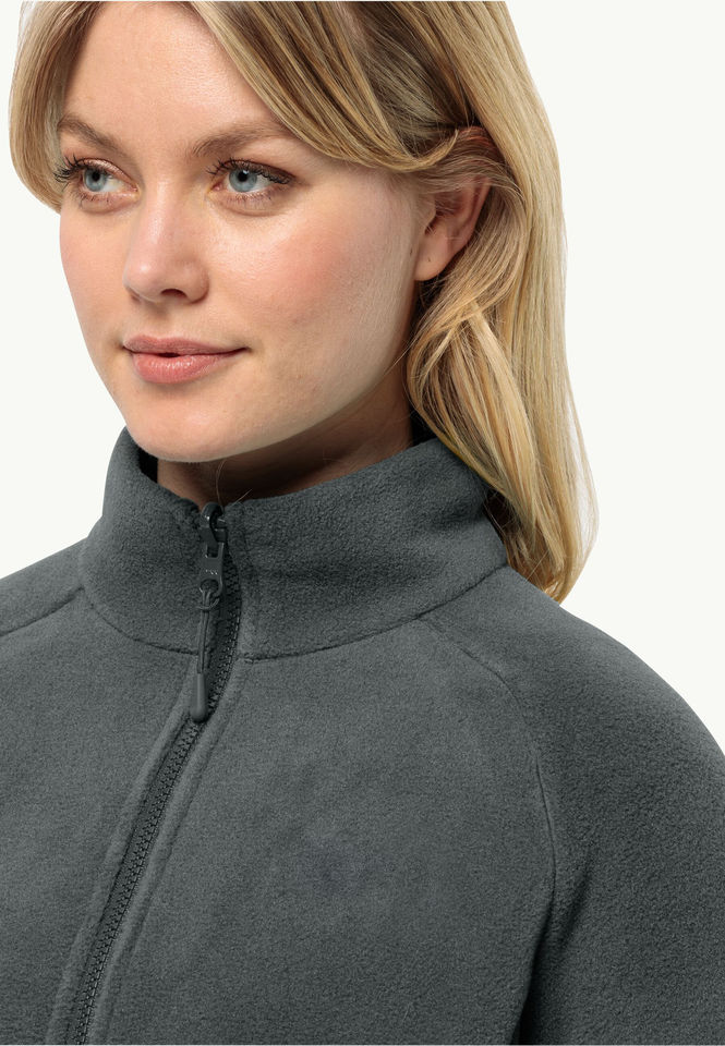 แจ็กเก็ตขนแกะซิปเต็มสำหรับผู้หญิงกำหนดเองได้กันลมใช้ปักกลางแจ้งขนแกะสีเทาเข้มพิมพ์ลายสตรีทผู้หญิง