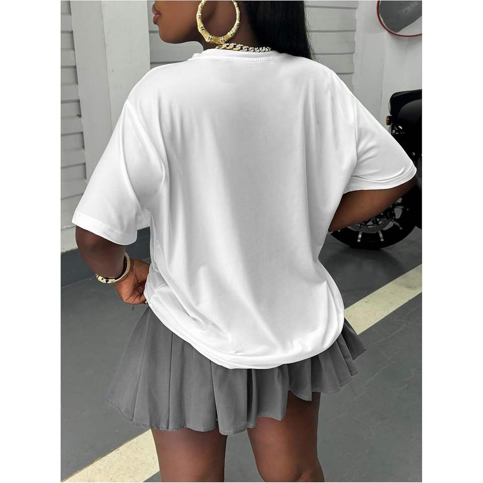 เสื้อยืดผู้หญิงลายกราฟิก พิมพ์ลายตัวอักษร แขนสั้น ทรงหลวม สไตล์ลำลอง ผ้าฝ้ายเจอร์ซีย์ 100% ระบายอากาศได้ดี