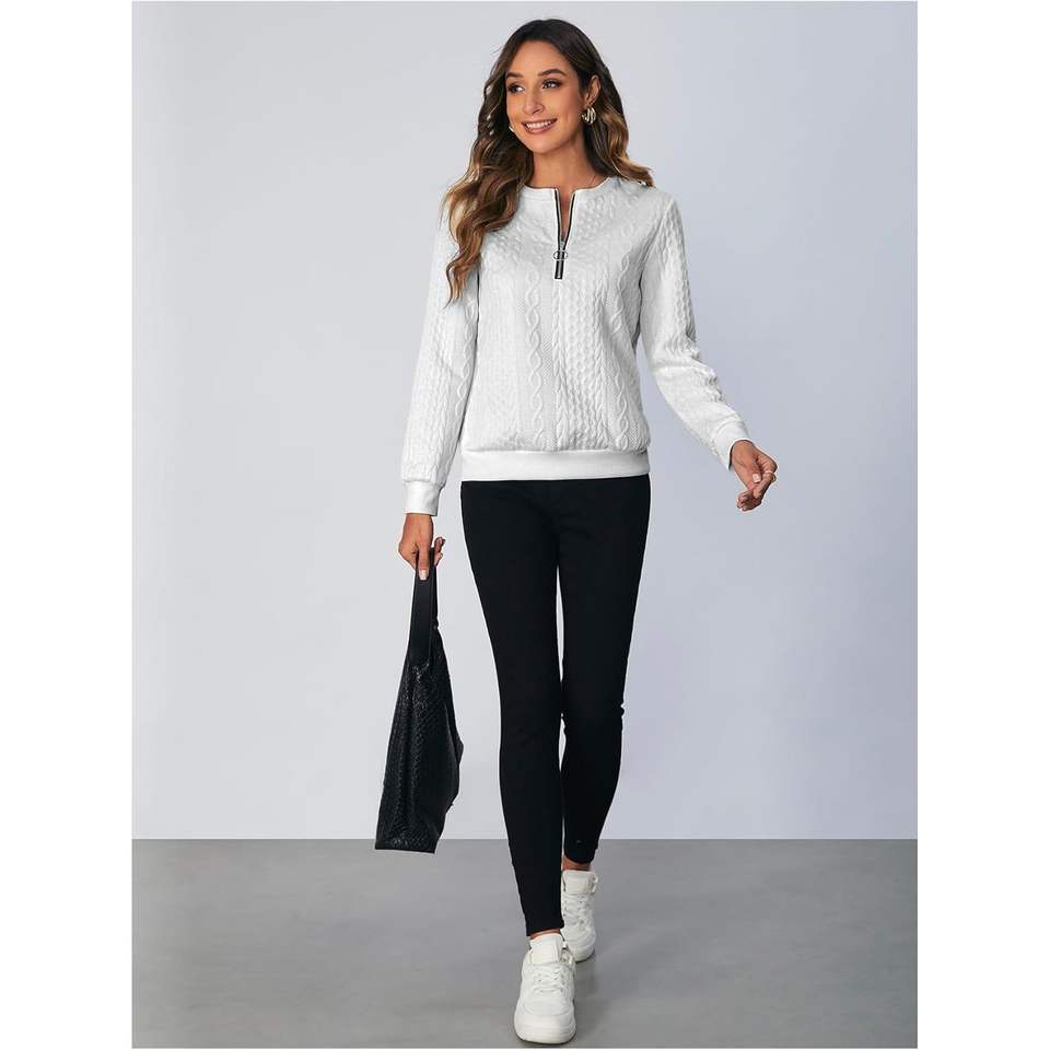 เสื้อสเวตเชิ้ตผู้หญิงแบบครึ่งซิป คอกลม แขนยาว ถักลายเคเบิ้ล ระบายอากาศได้ดี ผลิตจากอะคริลิก 100%