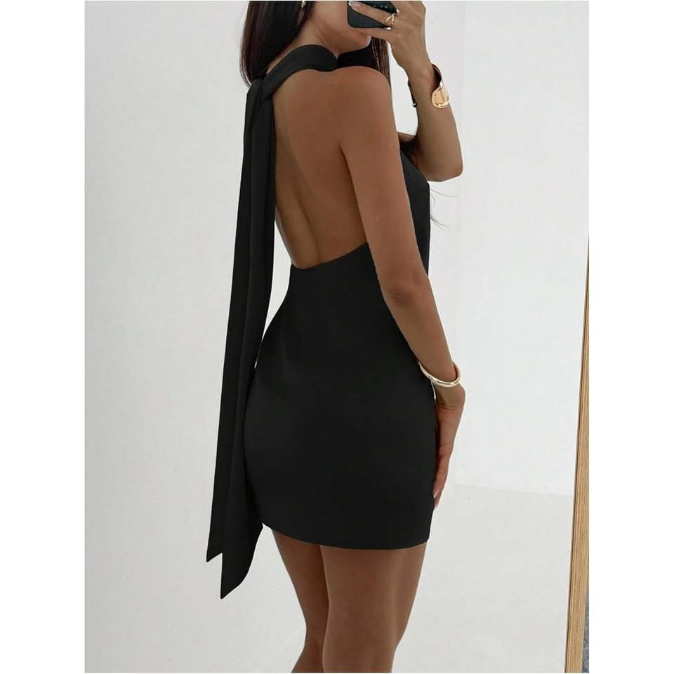 Custom Women's Halter Mini Dress Satin Bodycon Backless Party Dress Cocktail Dress