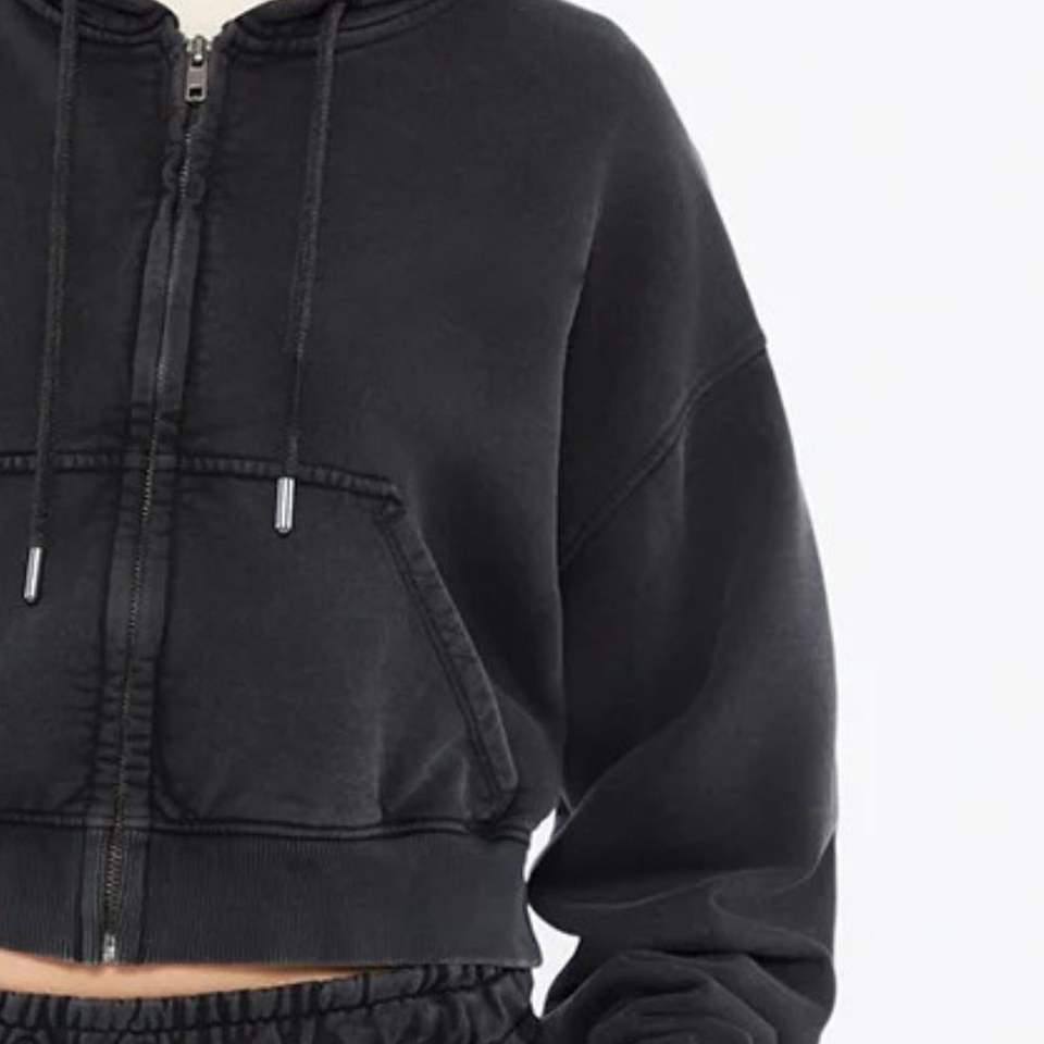 เสื้อฮู้ดครอปซิปสำหรับผู้หญิง ผ้าฟลีซ ระบายอากาศได้ดี เป็นมิตรกับสิ่งแวดล้อม ล้างสีแบบแอซิดวอช ทรงโอเวอร์ไซส์ สไตล์ฮิปฮอป พร้อมป้ายตกแต่ง ผลิตจากผ้าฝ้าย 100%