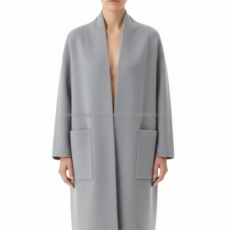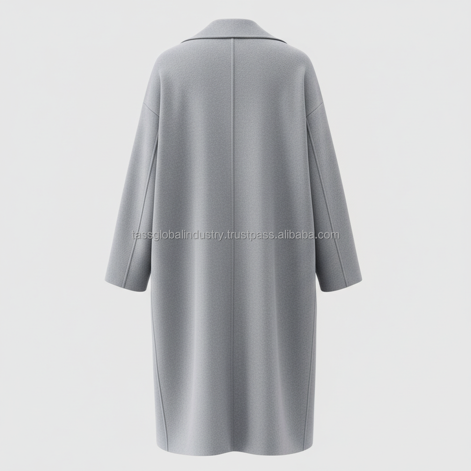 เสื้อโค้ทขนสัตว์สีเทาอ่อนแบบกระดุมสองแถวสำหรับผู้หญิง ผลิตตามสั่งและรับผลิตภายใต้แบรนด์ของลูกค้า