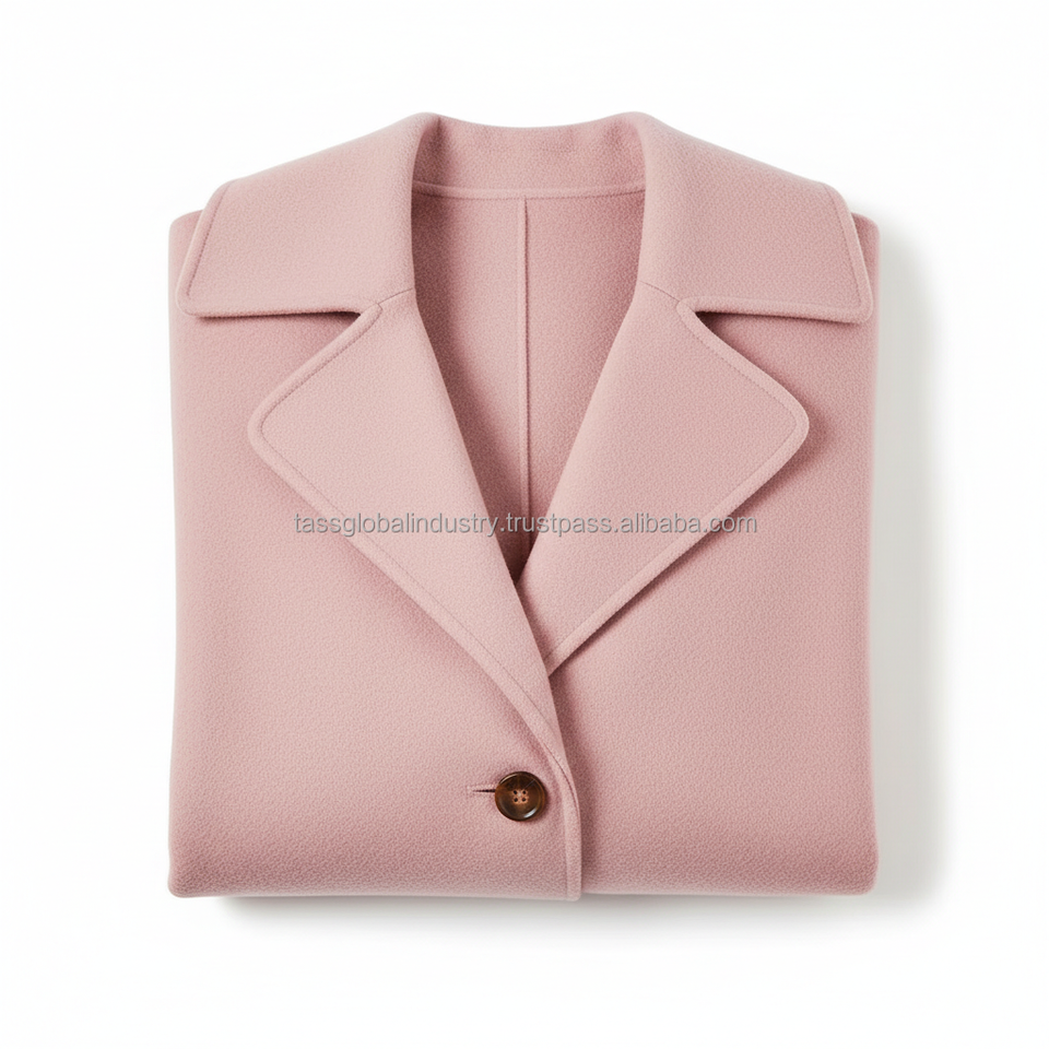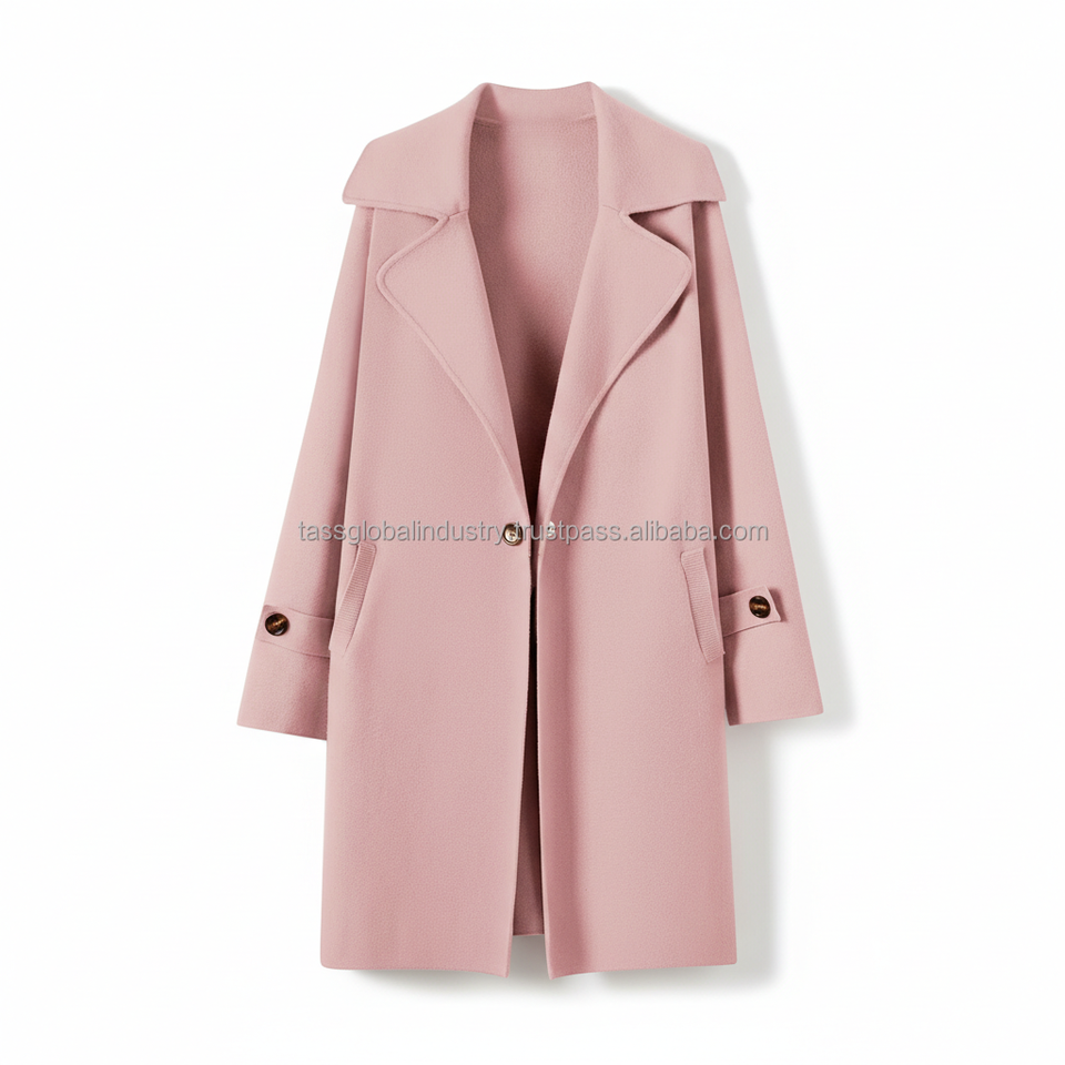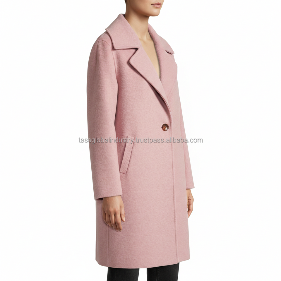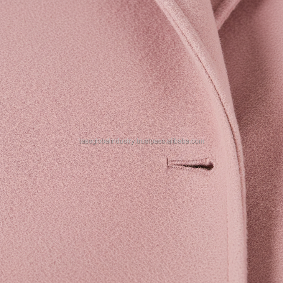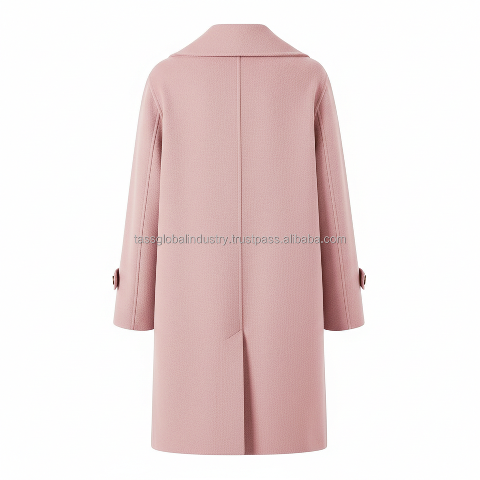 เสื้อโค้ทขนสัตว์สีชมพูอ่อนแบบกระดุมสองแถวสำหรับผู้หญิง ผลิตตามสั่งและรับผลิตภายใต้แบรนด์ของลูกค้า