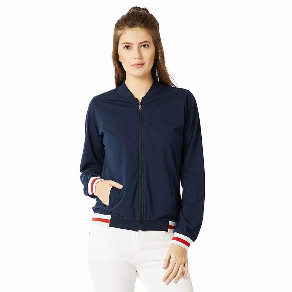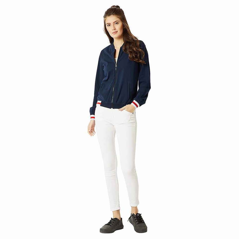 เสื้อแจ็คเก็ตบอมเบอร์ผู้หญิงแบบยาว สีพื้น คอปก ซิป ระบายอากาศได้ดี ผลิตจากโพลีเอสเตอร์/ผ้าฝ้าย/ไนลอน ทันสมัย ย้อมสีเรียบ