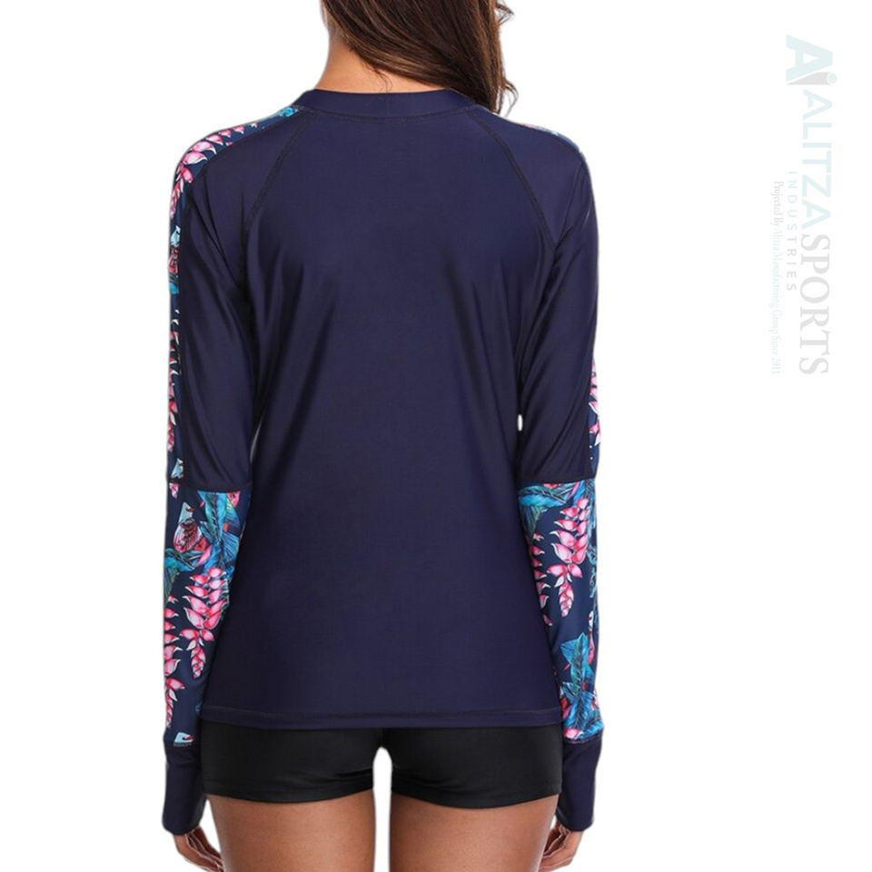 เสื้อชั้นในแขนยาวสำหรับผู้หญิงเสื้อพิมพ์ลายเสื้อแร็ชการ์ดแขนยาวน้ำหนักเบาแห้งเร็วป้องกันรังสียูวีสำหรับกิจกรรมชายหาดตัดเป็นชิ้นพิเศษ