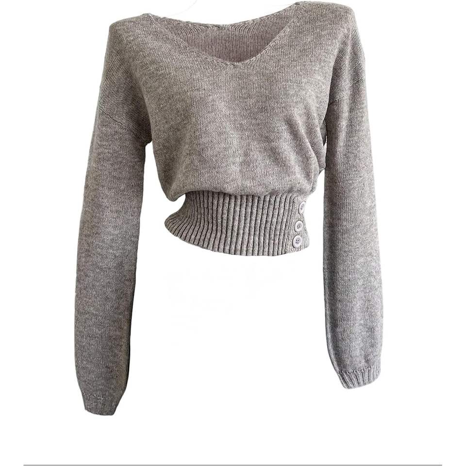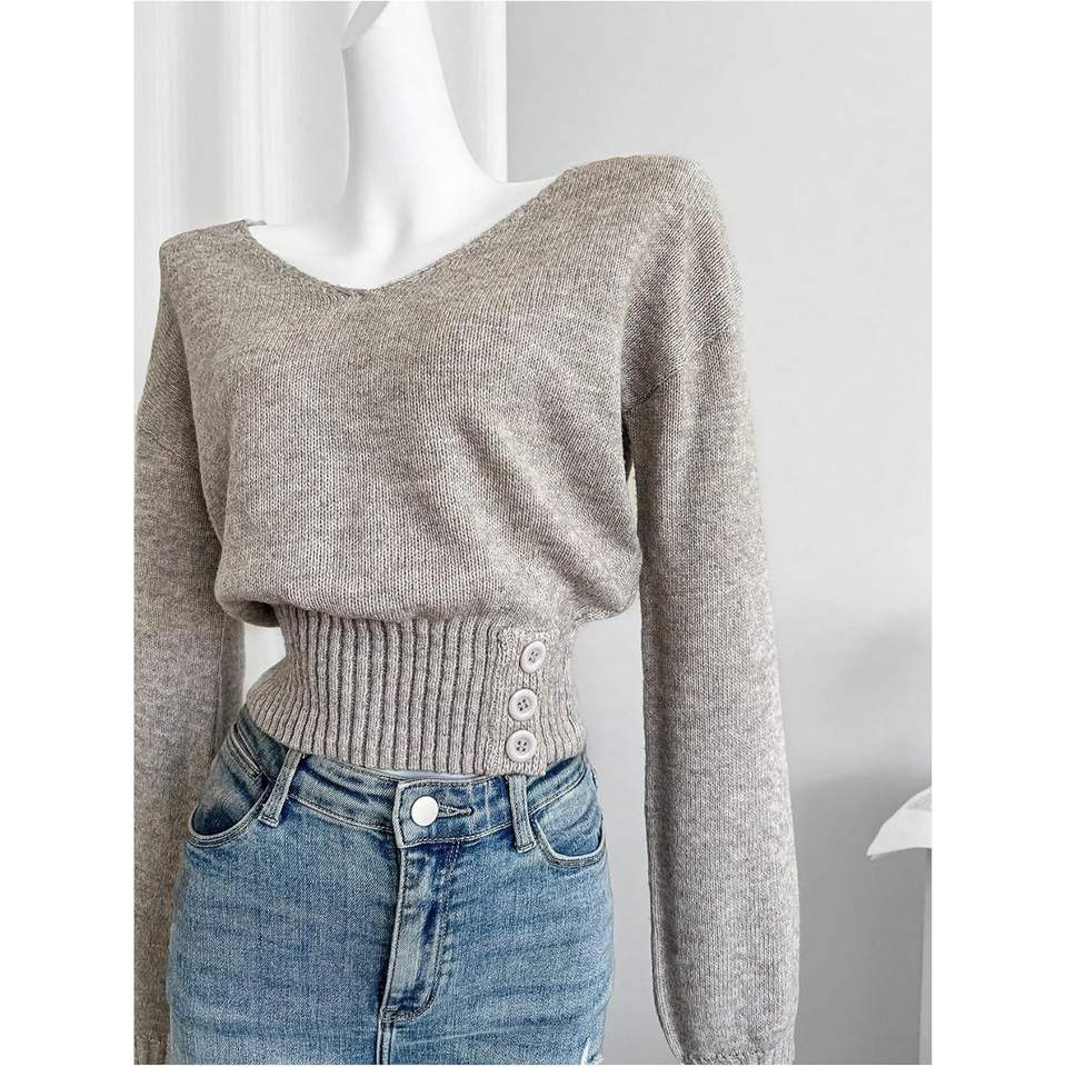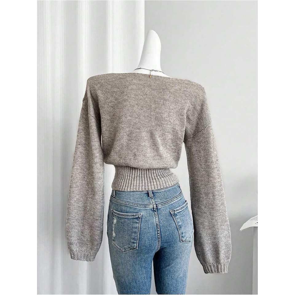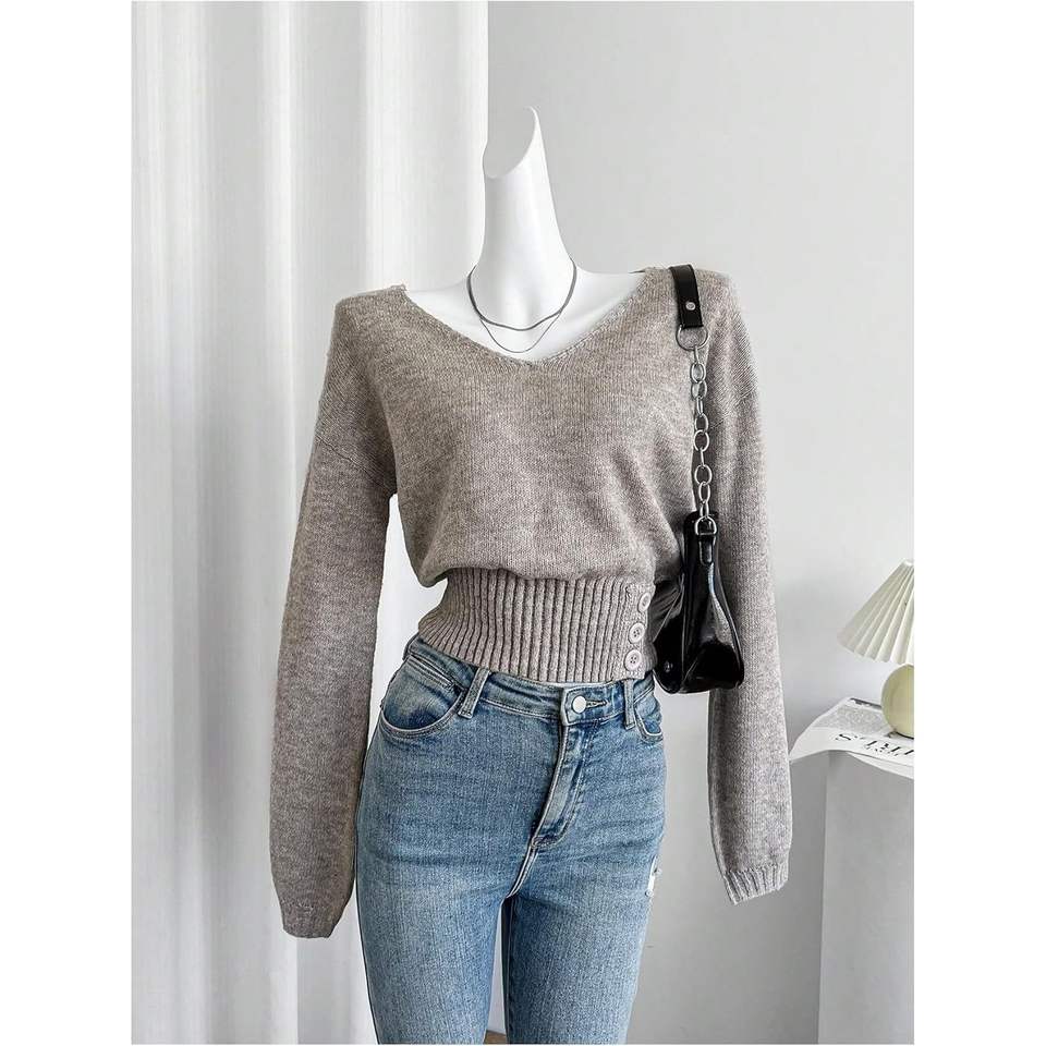 เสื้อสเวตเตอร์ไหมพรมคอวีแขนยาวสำหรับผู้หญิง สไตล์ลำลอง กระชับรูปร่าง เหมาะสำหรับฤดูใบไม้ร่วง ผ้าไม่เป็นขุย 16 กรัม