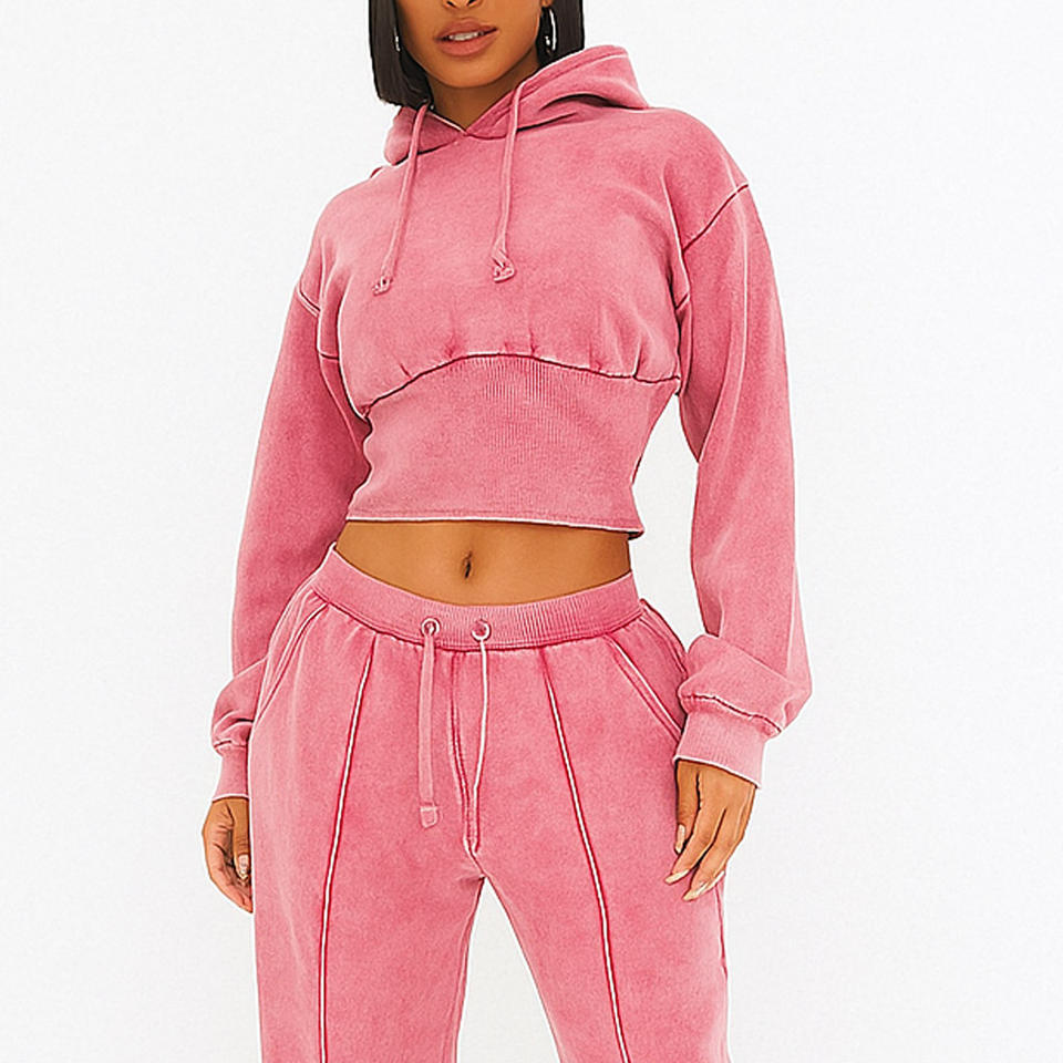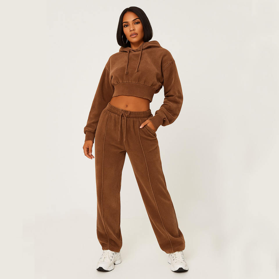ชุดวอร์มมูสมอคค่าสำหรับผู้หญิงชุดครอปมีฮู้ดและกางเกงวิ่งชุดใส่อยู่บ้าน