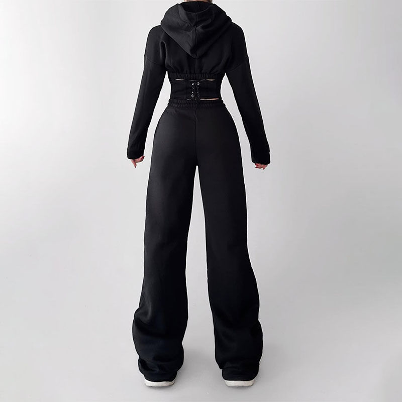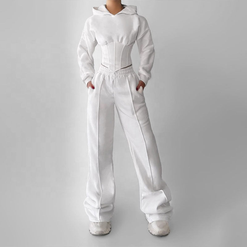 ชุดเซ็ตสองชิ้นสำหรับผู้หญิง ทรงปกติ ลายเรียบ มีฮู้ด เสื้อฮู้ดดี้และกางเกงขายาว ไซส์พลัส เป็นมิตรกับสิ่งแวดล้อม ชุดลำลองสำหรับฤดูหนาว