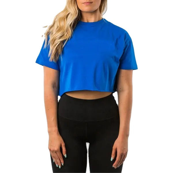 เสื้อเอวลอยทรงสลิมฟิตสำหรับผู้หญิงเสื้อยืดคอกลมลำลองผ้าฝ้ายโพลีเอสเตอร์100% แบบเรียบง่ายสไตล์เซ็กซี่