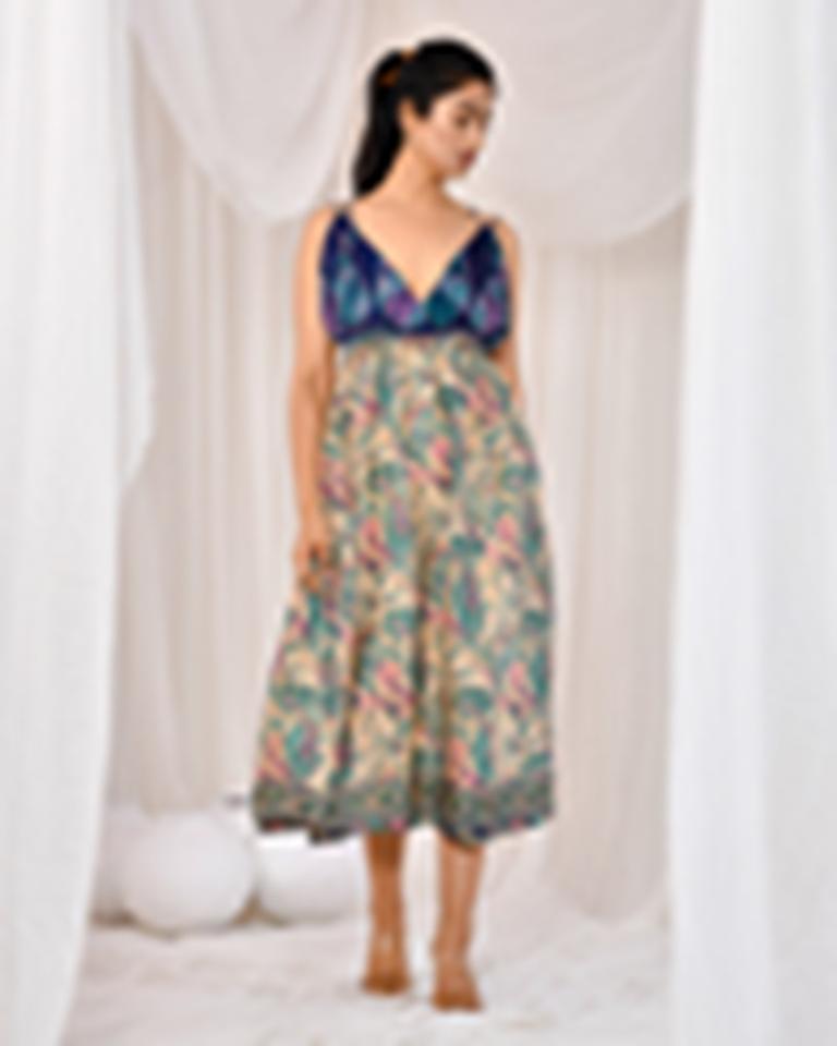 เดรสมิดิทรงเอไลน์สำหรับผู้หญิงใส่ในฤดูร้อนเสื้อสายเดี่ยวพิมพ์ลายดอกไม้สไตล์อิตาเลียนแฟชั่นลำลองคอวีแขนกุดสำหรับเด็กผู้หญิง