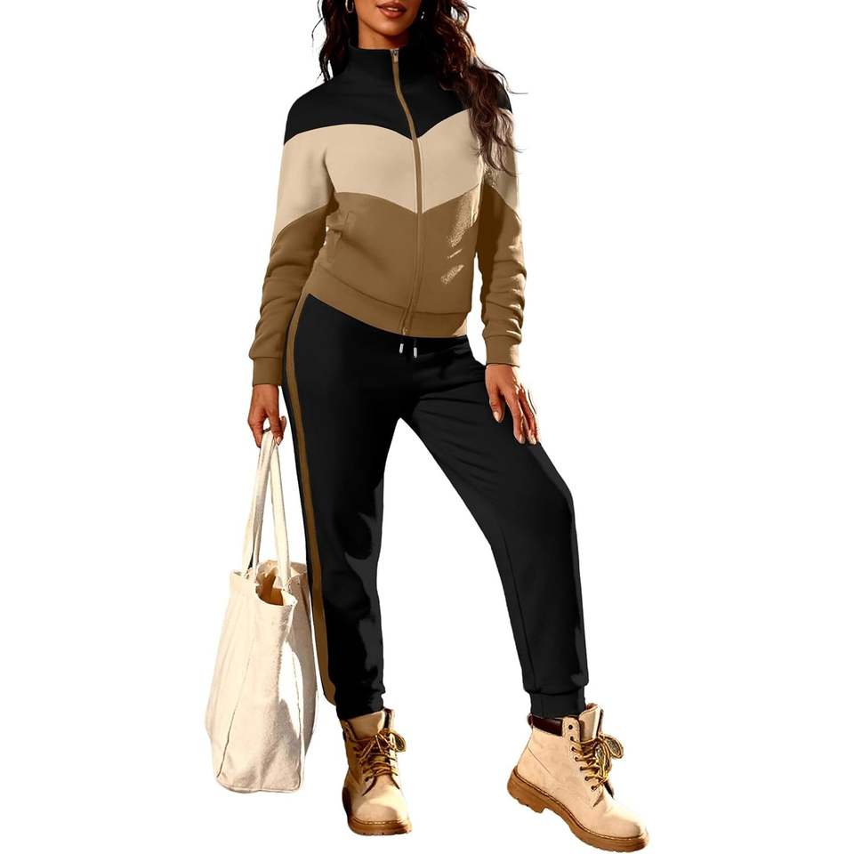 ชุดวอร์มผู้หญิงแบบกำหนดเอง 2 ชิ้น เสื้อแจ็คเก็ตซิป กางเกงจ็อกเกอร์ ผ้าสแปนเด็กซ์โพลีเอสเตอร์เนื้อหนาปานกลาง ระบายอากาศได้ดี ชุดลำลองสำหรับออกกำลังกาย