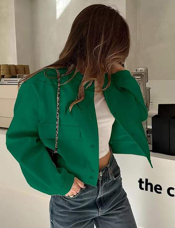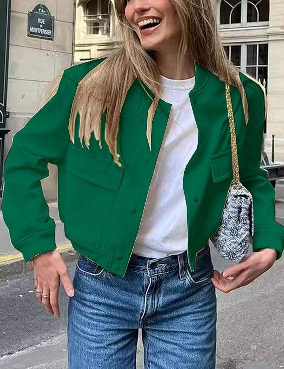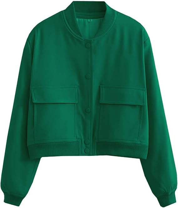 เสื้อแจ็คเก็ตวาร์ซิตี้ผู้หญิงแบบสั่งทำพิเศษ แขนยาว ติดกระดุม ทรงครอป แจ็คเก็ตบอมเบอร์ลำลอง สไตล์เบสบอล