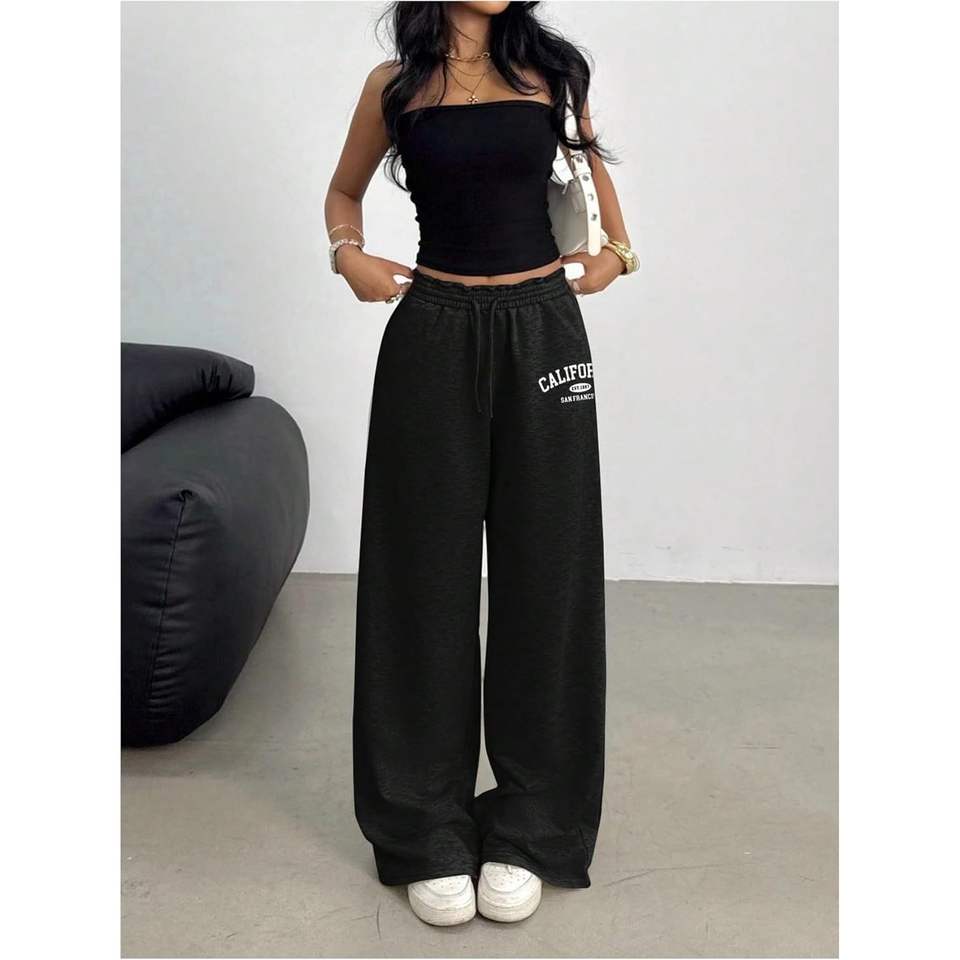 กางเกงวอร์มขายาวทรงหลวมสำหรับผู้หญิง เอวยางยืด บุขนด้านใน สไตล์ลำลอง มีกระเป๋า ลายกราฟิกแคลิฟอร์เนีย