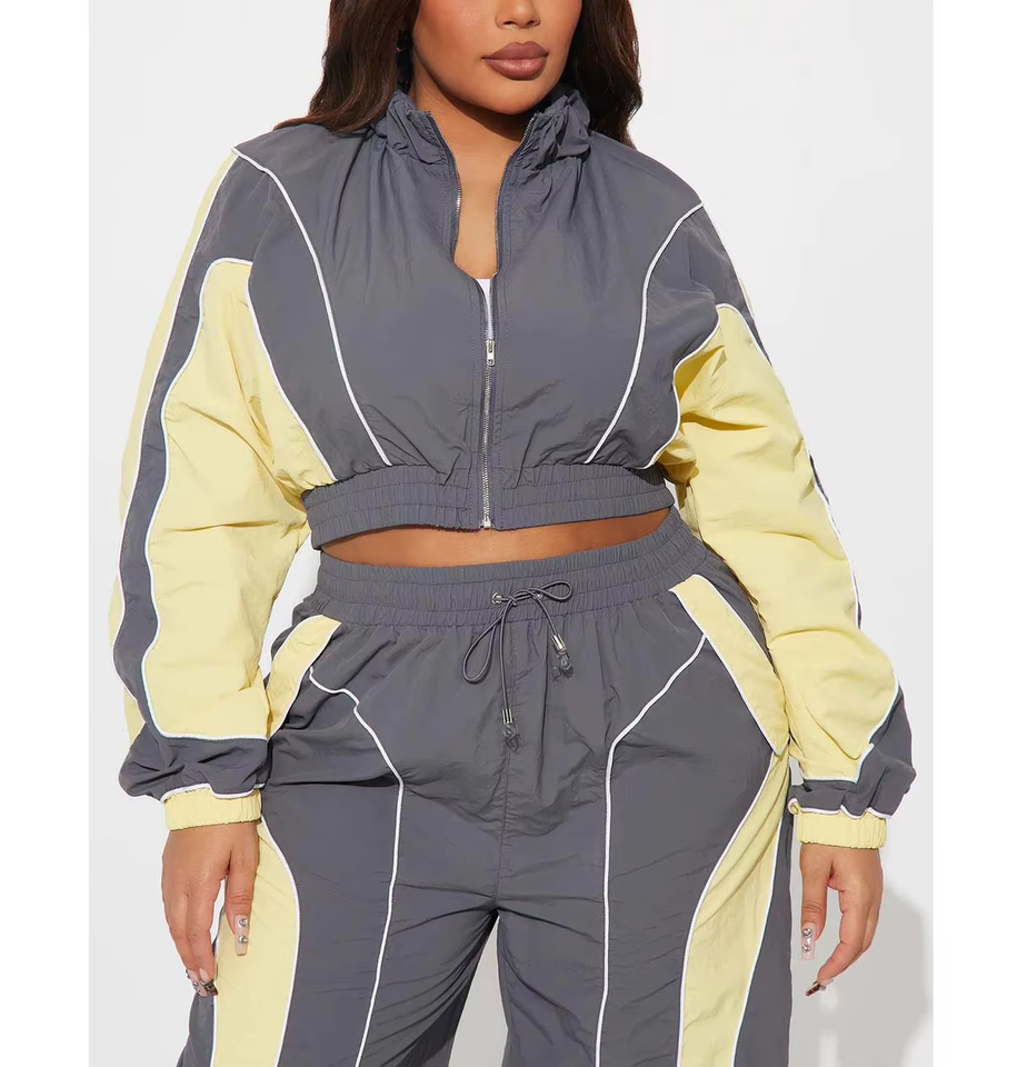 ชุดกันลมแบบมีท่อสำหรับผู้หญิงชุดวอร์มผ้าไนลอนปักโลโก้ชุดวอร์มไซส์ใหญ่2025 2026