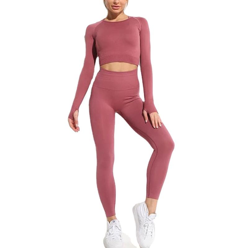 ชุดเล่นโยคะของผู้หญิงชุดสองชิ้นเสื้อคอกลมแขนยาวระบายอากาศได้เอวสูง2026กางเกงตามสั่ง