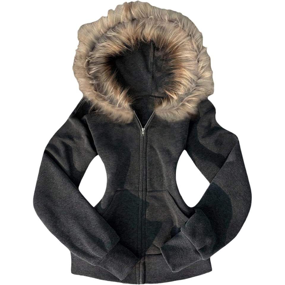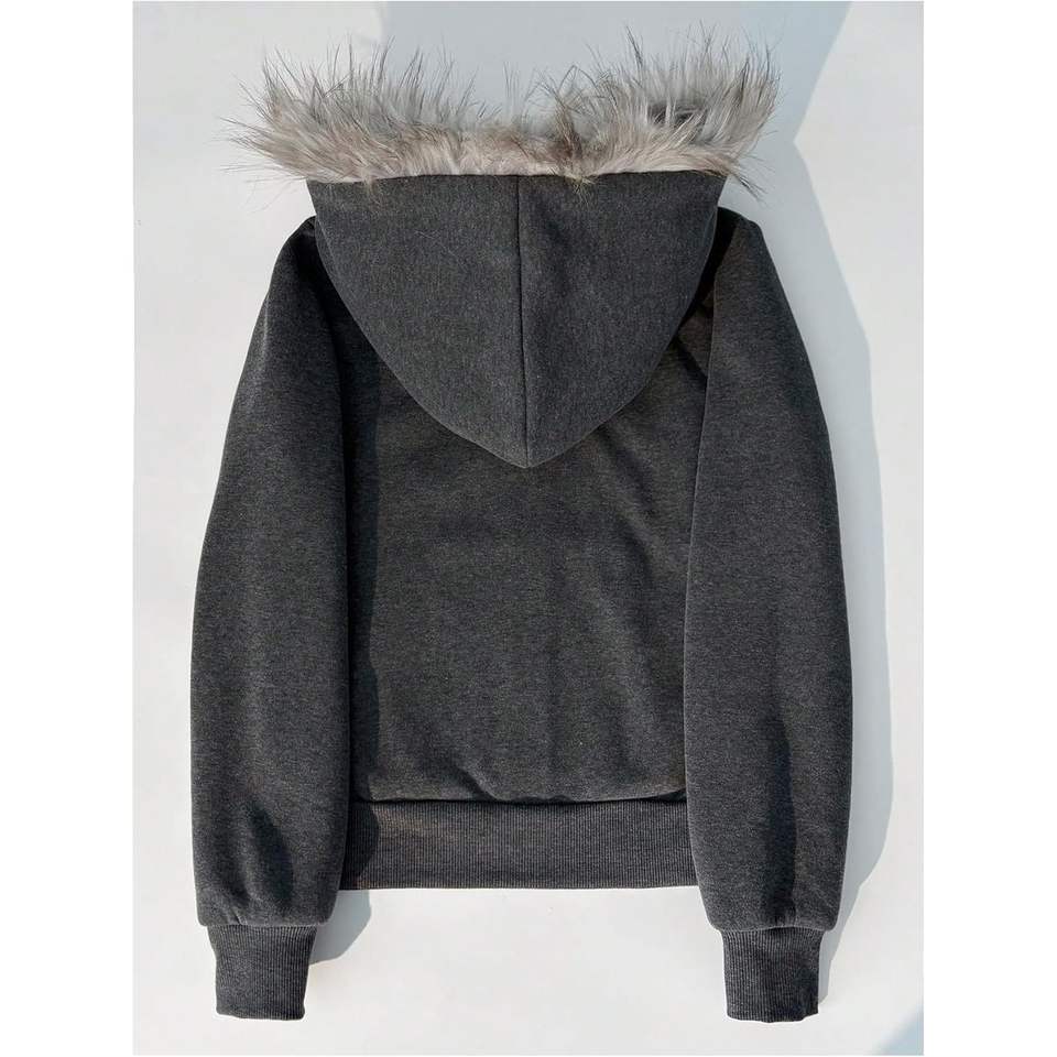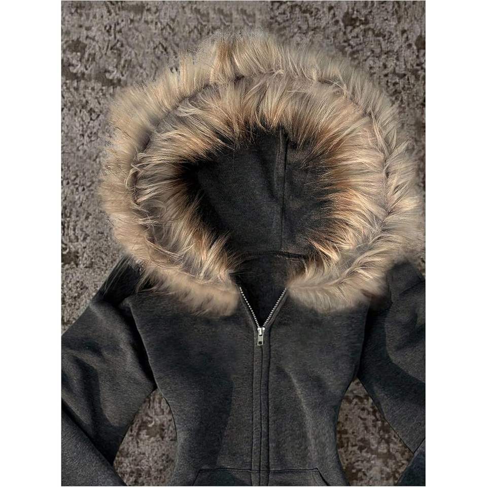 เสื้อฮู้ดซิปผู้หญิงแบบกำหนดเอง แขนยาว ผ้าฟู มีกระเป๋า สไตล์สตรีทแวร์ ผ้าถัก โพลีเอสเตอร์ คอตตอน