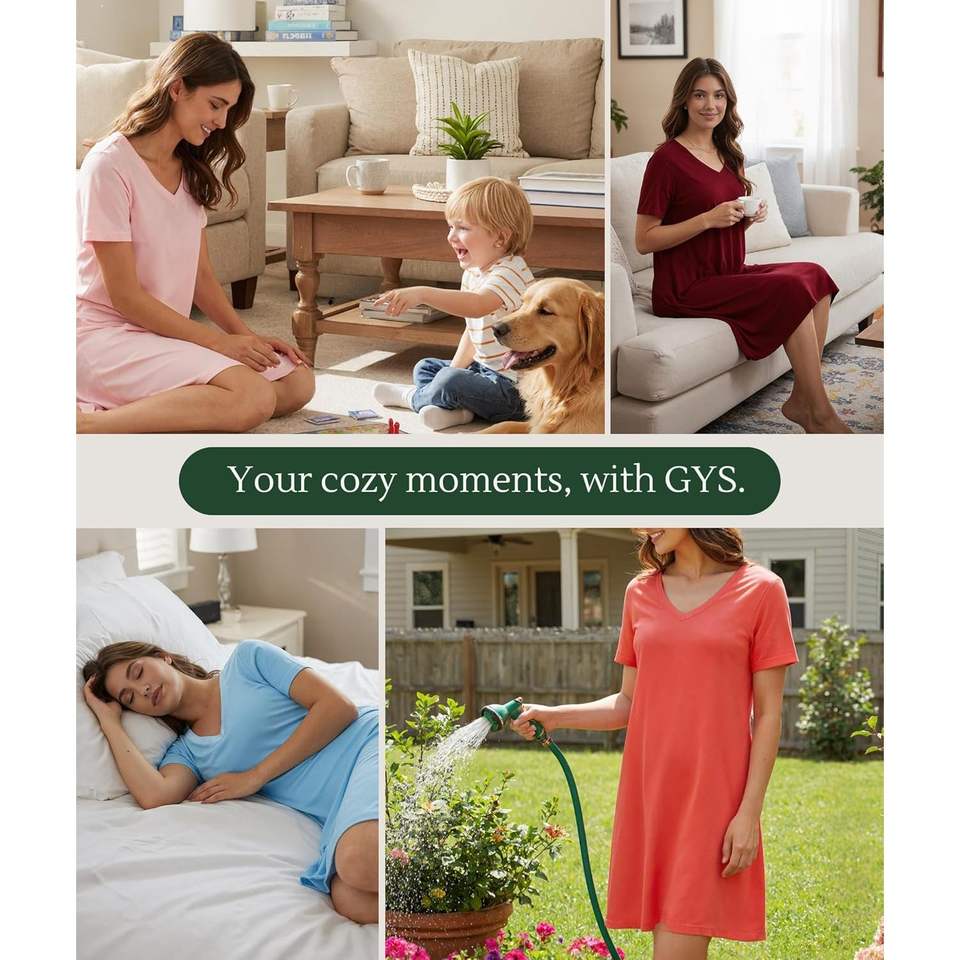Custom Womens Bamboo Viscose Nightgown Short Sleeve Sleep Dress Silky Soft Lightweight V Neck for Hot Sleepers