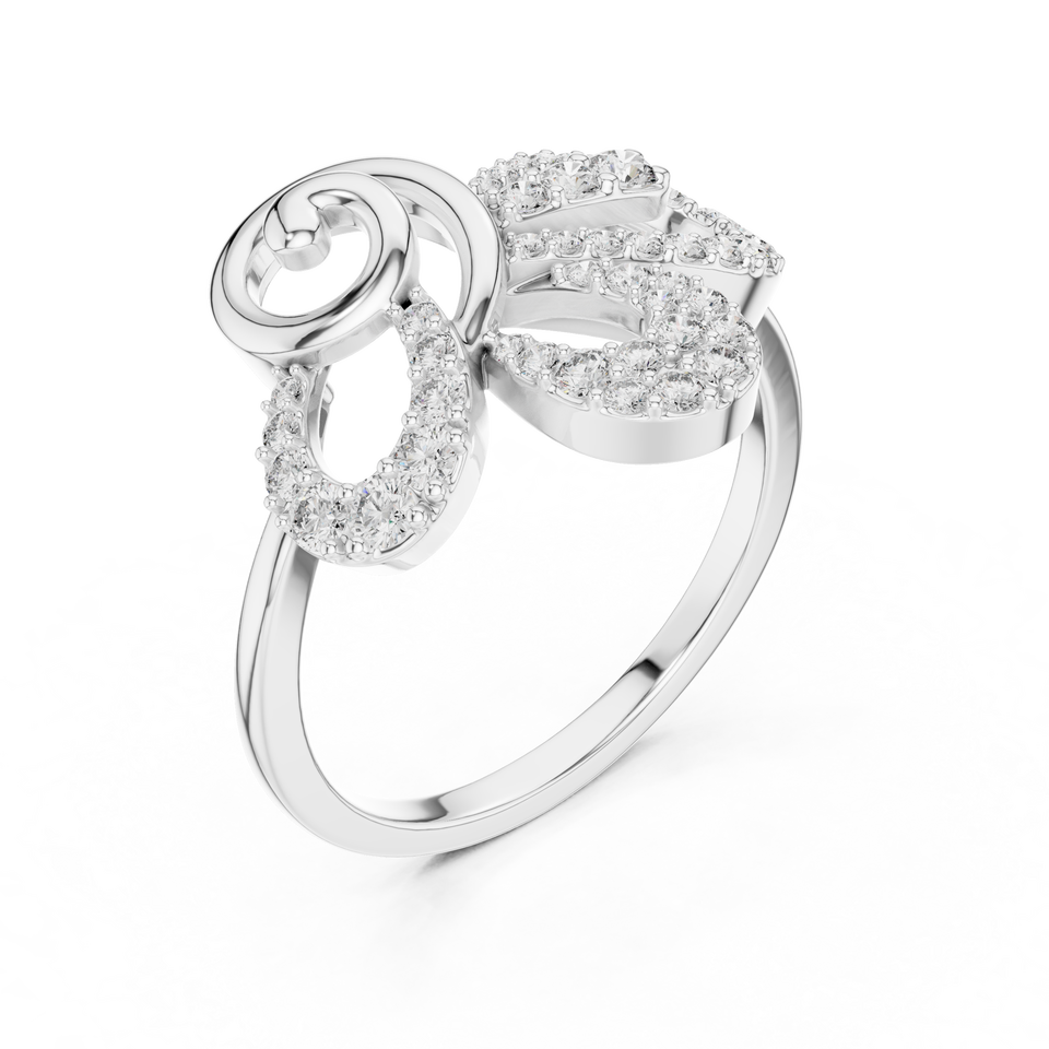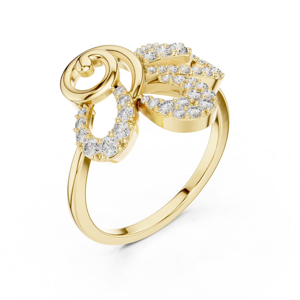 แหวนเพชรผู้หญิงแบบกำหนดเอง ดีไซน์ลายดอกไม้หมุนวน สวยหรู สีเงิน สีทอง โรงงานผลิตเครื่องประดับแบบ OEM ODM