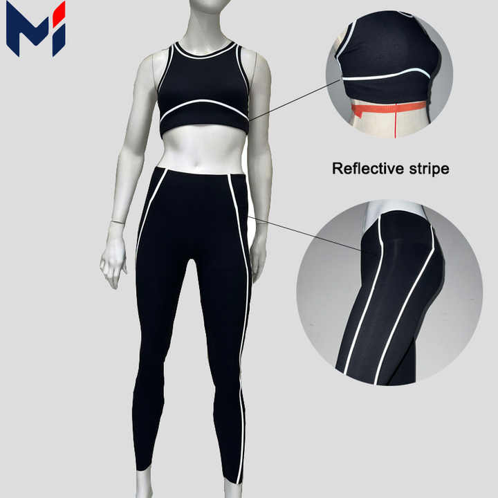 ชุดเลกกิ้งโยคะสำหรับสตรีชุดโยคะฟิตเนสลายทางสะท้อนแสง