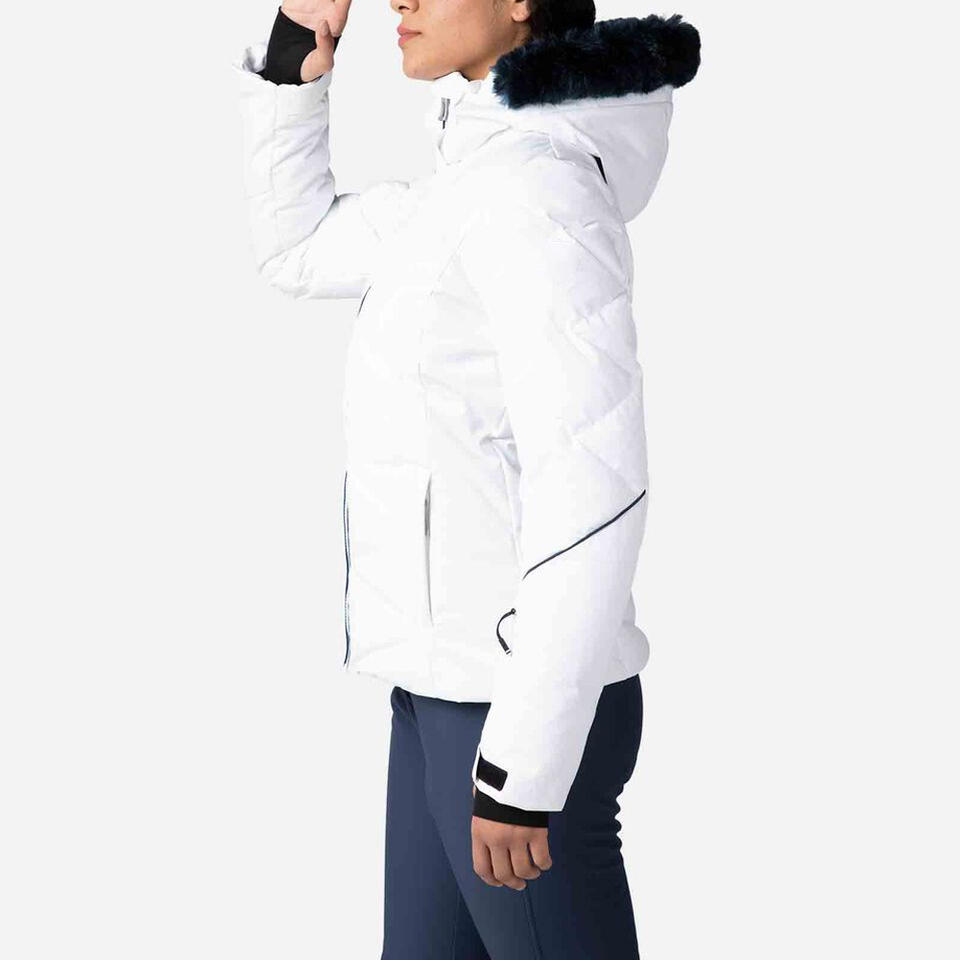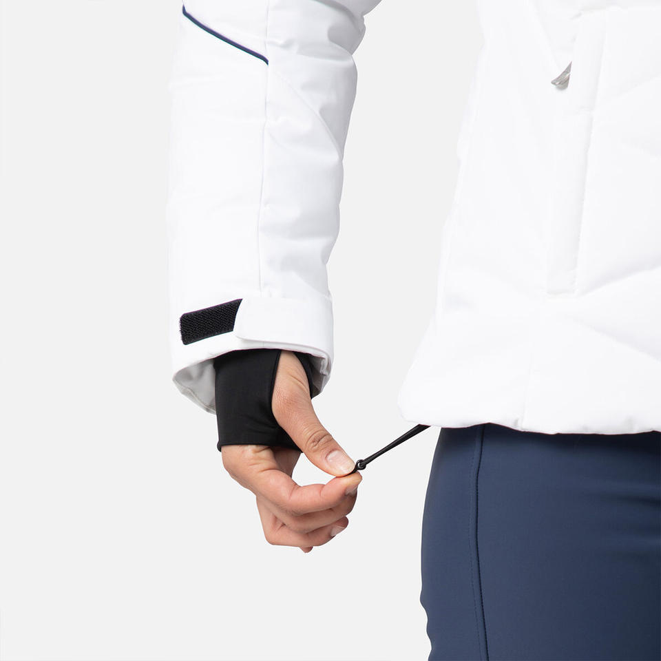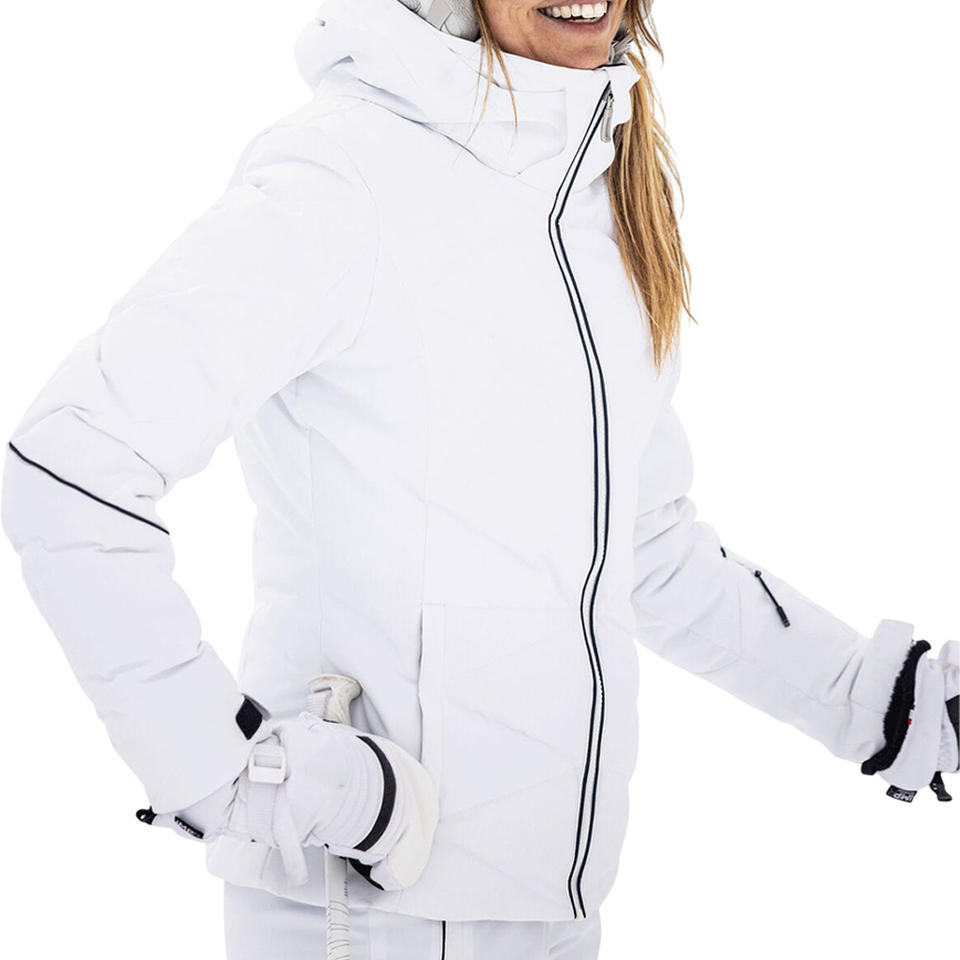 เสื้อโค้ทเล่นสกีของผู้หญิงพร้อมพิมพ์โลโก้เสื้อแจ็กเก็ตมีซิปให้ความอบอุ่นกันน้ำเหมาะสำหรับการเดินเขาบนหิมะและเล่นสกี