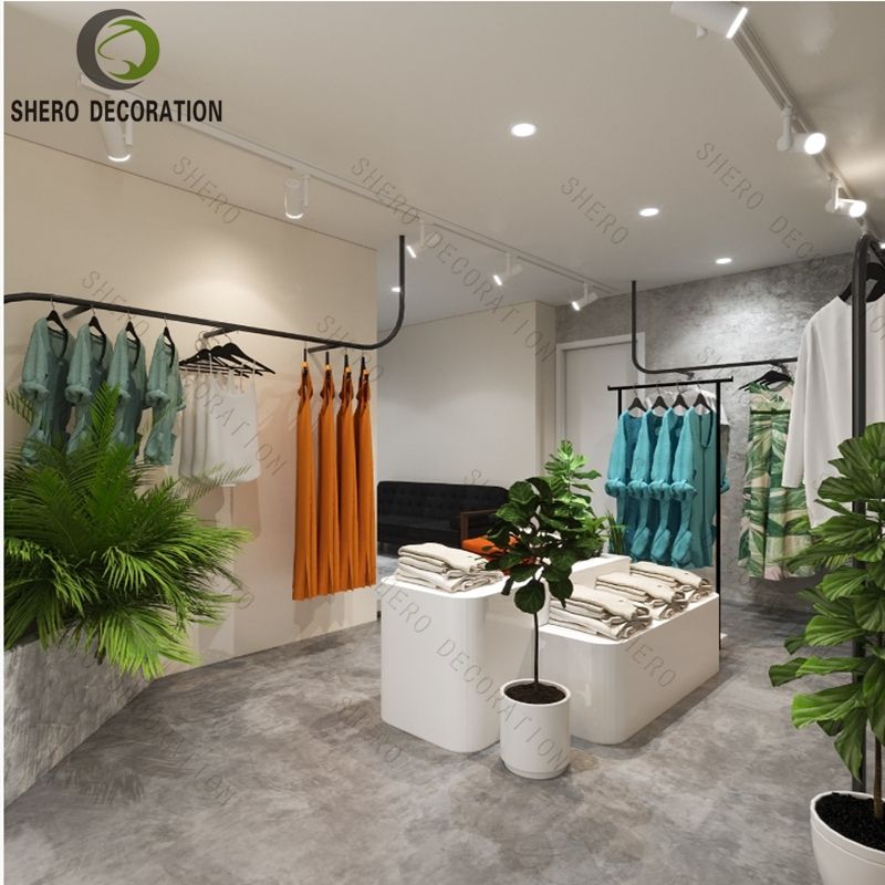 ชั้นวางแสดงเสื้อผ้าแฟชั่นสำหรับผู้หญิงที่ทันสมัยสำหรับตกแต่งร้านเสื้อผ้าผู้หญิงออกแบบตกแต่งภายในได้ตามต้องการ
