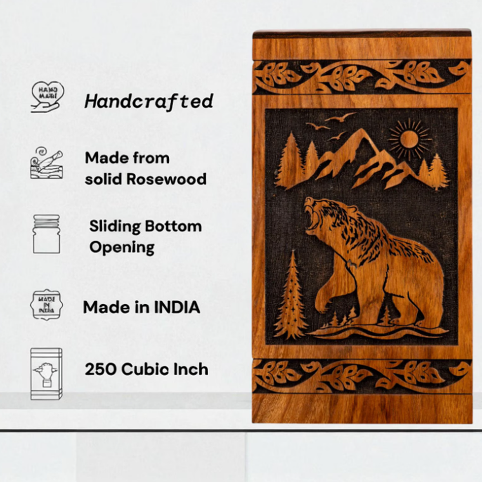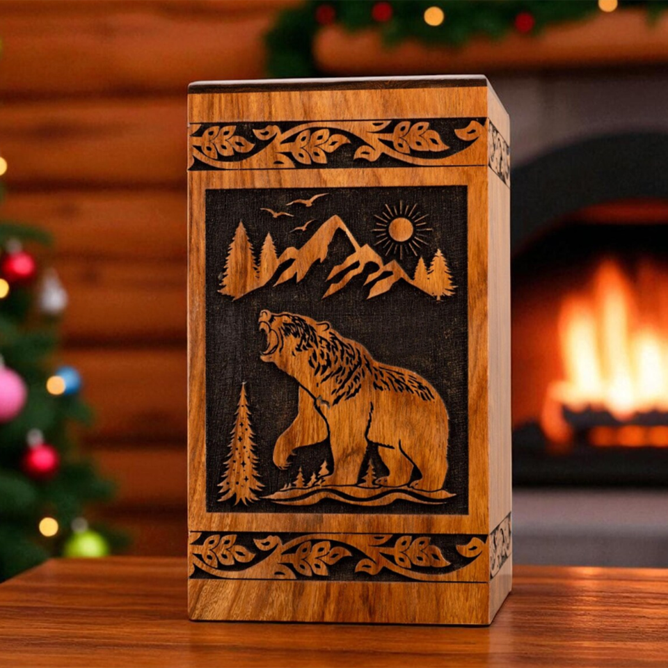 กล่องใส่เถ้าไม้ขี้เถ้าพร้อมการแกะสลักด้วยเลเซอร์ภาชนะใส่ขี้เถ้าไม้ธรรมชาติสำหรับผู้ใหญ่โดย ayaans