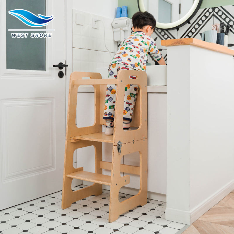 หอคอยไม้และไม้ไผ่เรียนรู้แบบกำหนดเองสำหรับเด็กวัยหัดเดินรางนิรภัยกันตกสำหรับหอช่วยเหลือในครัว
