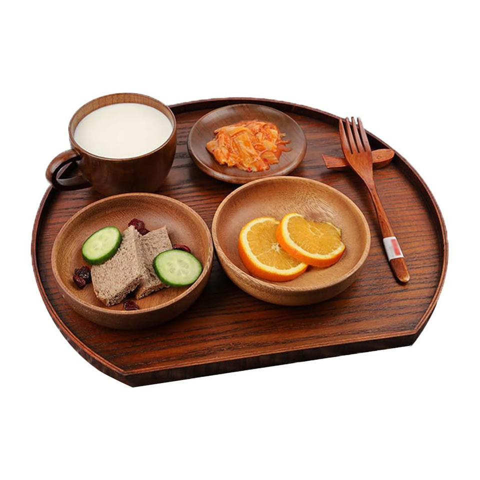 จานเสิร์ฟไม้แบบกําหนดเองถาดอาหารรูปพระจันทร์ครึ่งดวงตกแต่งถาดเคาน์เตอร์สําหรับเสิร์ฟกาแฟชาชีสขนมผลไม้