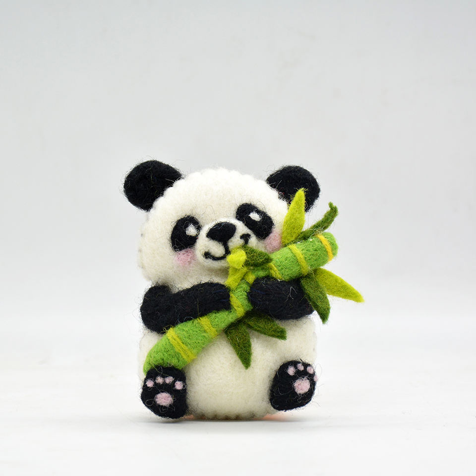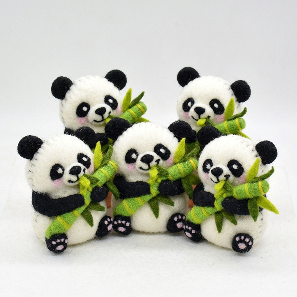 ตุ๊กตาหมีแพนด้าทำจากผ้าขนสัตว์แบบสั่งทำ - ของเล่นสัตว์น่ารักสำหรับเด็ก - หมีแพนด้าตกแต่งพร้อมไม้ไผ่สำหรับตกแต่งชั้นวางและโต๊ะทำงาน