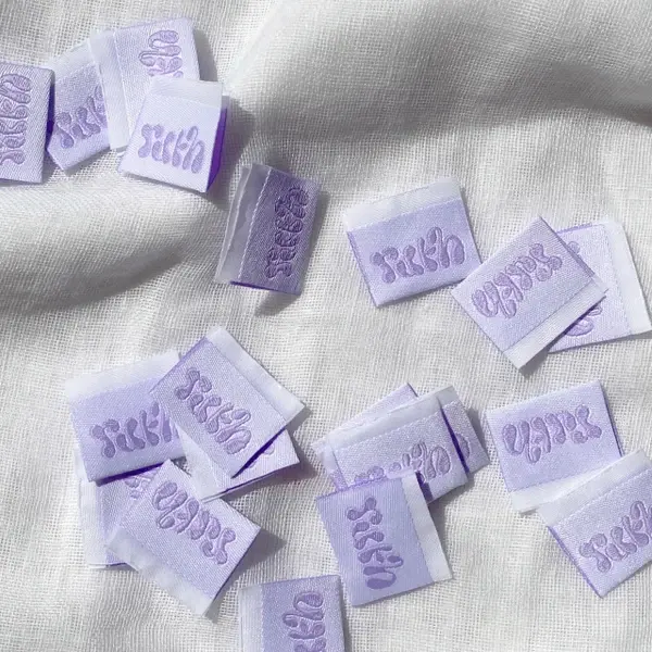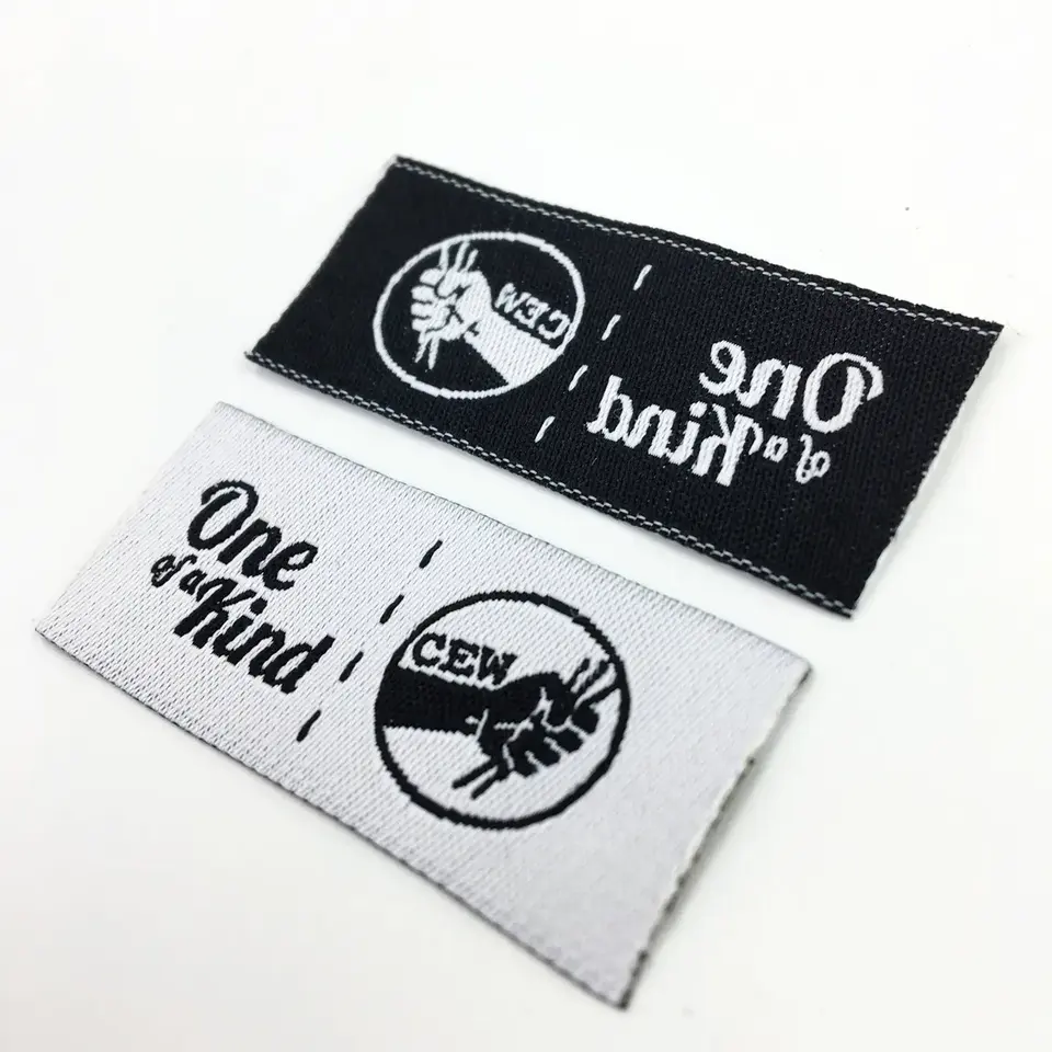 ป้ายผ้าฝ้ายทอแบบกำหนดเองสำหรับเสื้อผ้ารองเท้าและกระเป๋าพิมพ์ลายยั่งยืนป้ายชื่อแบรนด์โลโก้